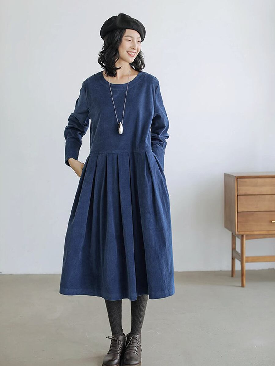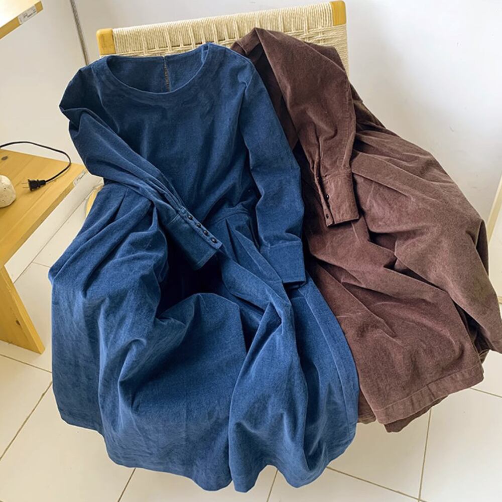 全2色 くすみカラーコーディロイシンプルワンピース 大人カラー コーディロイ 長袖 長袖ワンピース ラウンドネック 丸首 秋冬 Aライン シンプル あったか ロング 楽ちん かわいい 大人可愛い きれいめ カジュアル おしゃれ お洒落 レトロ 大人女子 こなれ感 ラブリー キュート ガーリー 個性的 モダン 主役級 存在感 抜け感 デート お出かけ 女子会 休日 着回し 普段使い 韓国ファッション ブルー ブラウン 青 茶色