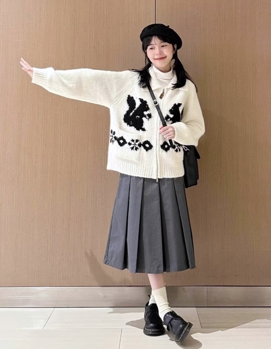 リスデザインニットジップアップカーディガン ニットカーディガン ペットデザイン 編み込み りすデザイン カーディガン ニット 襟あり 袖あり 長袖 かわいい 大人可愛い きれいめ シンプル カジュアル 大人 上品 おしゃれ お洒落 レトロ 大人女子 こなれ感 ラフ キュート 秋 冬 レディース 通勤 通学 デート お出かけ 着回し 普段使い 重ね着 楽ちん 暖かい 韓国コーデ 韓国ファッション 白 ホワイト