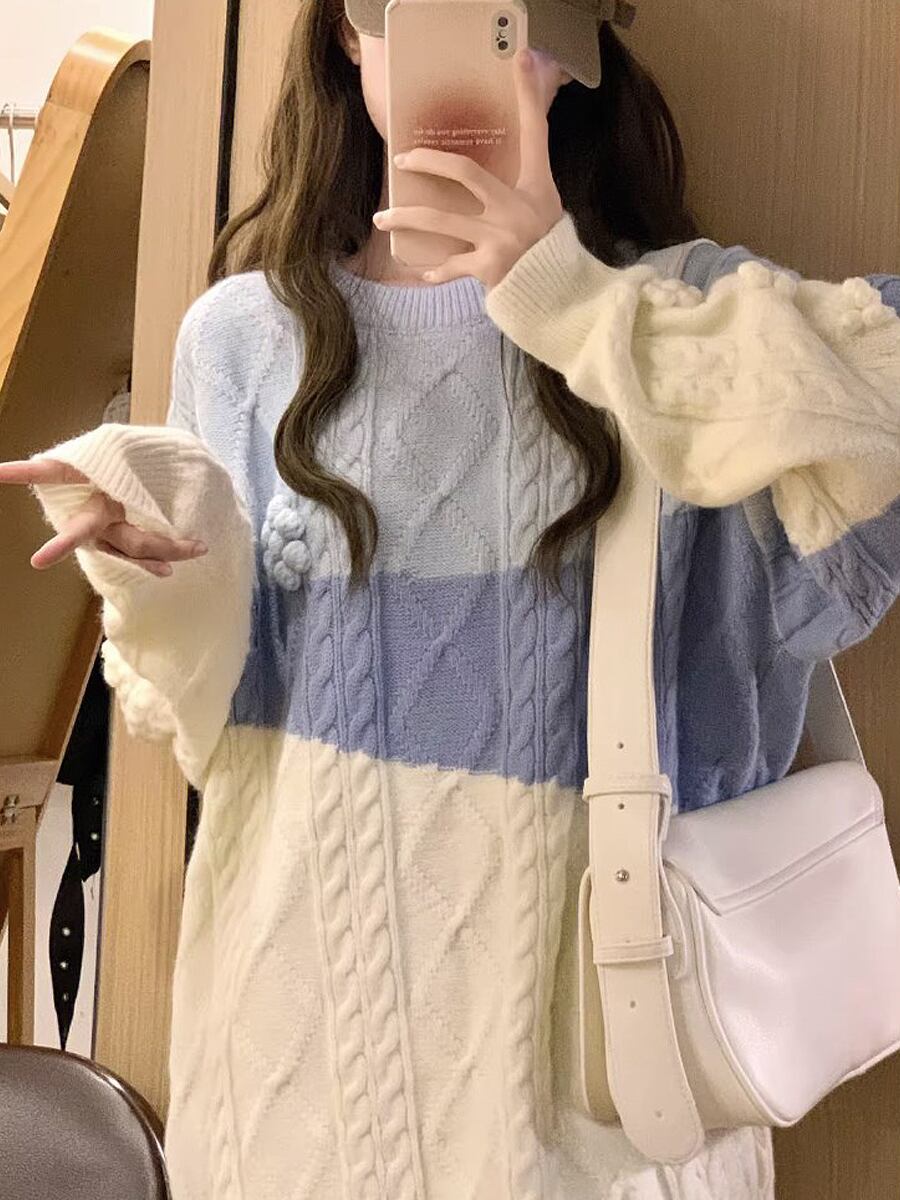 フラワーモチーフケーブルニット ニットプルオーバー セーター 縄編み ケーブルニット 青 水色 花モチーフ フラワーモチーフ ニット ラウンドネック 袖あり 長袖 かわいい 大人可愛い きちんと感 きれいめ シンプル カジュアル 大人 上品 おしゃれ お洒落 レトロ 大人女子 こなれ感 ラフ キュート 秋 冬 レディース 通勤 通学 デート お出かけ 着回し 普段使い 重ね着 楽ちん 暖かい 韓国コーデ 韓国ファッション 青