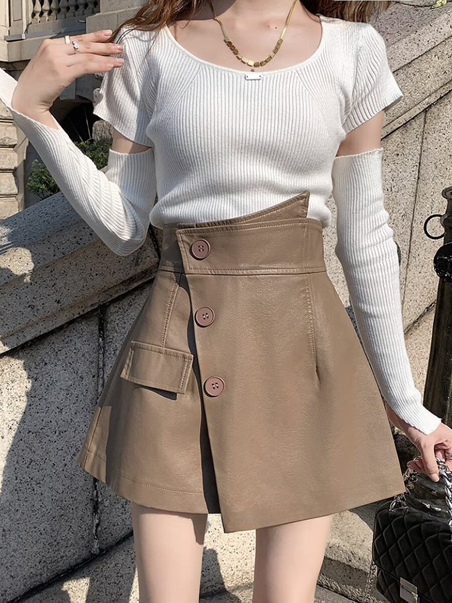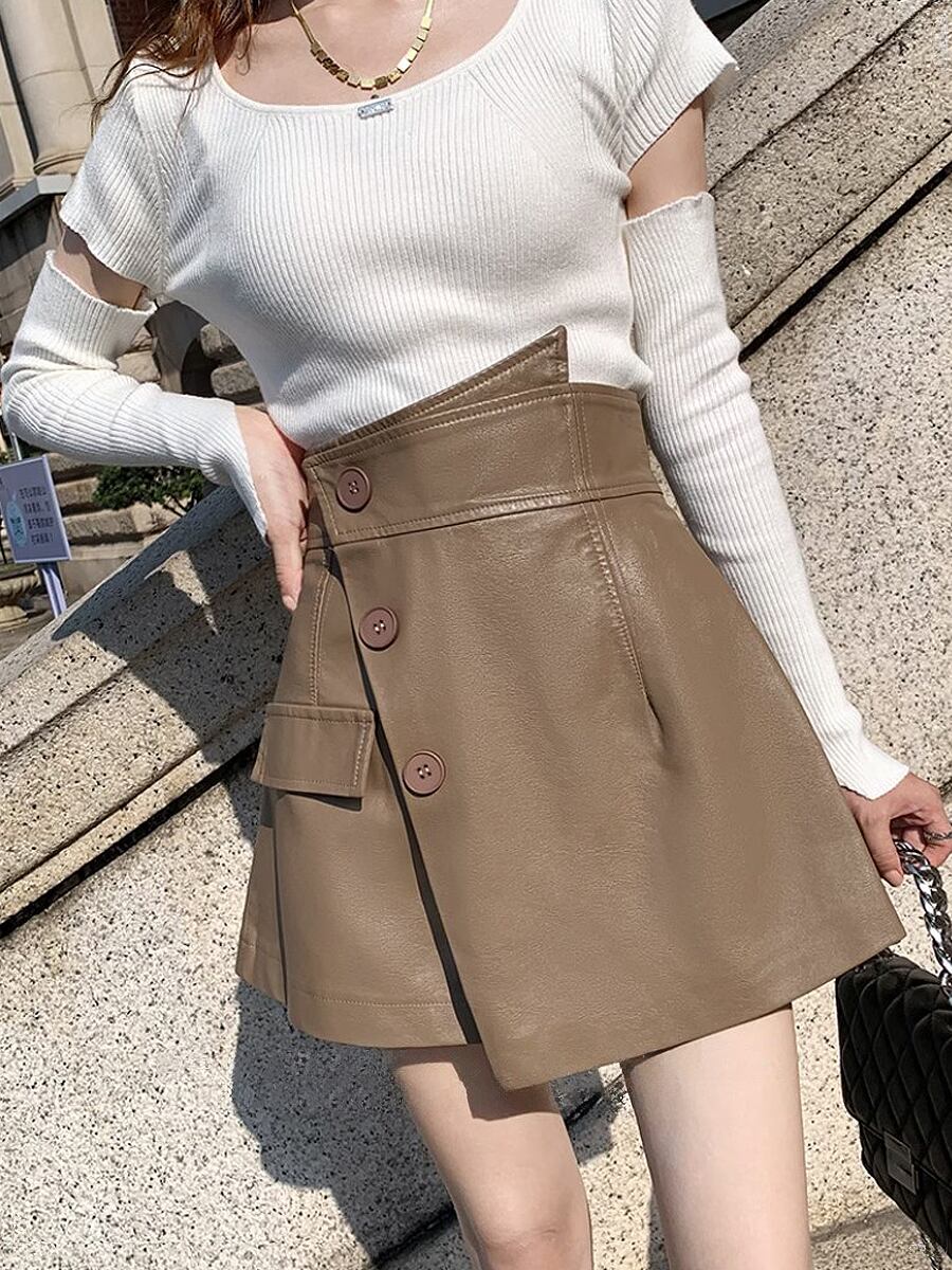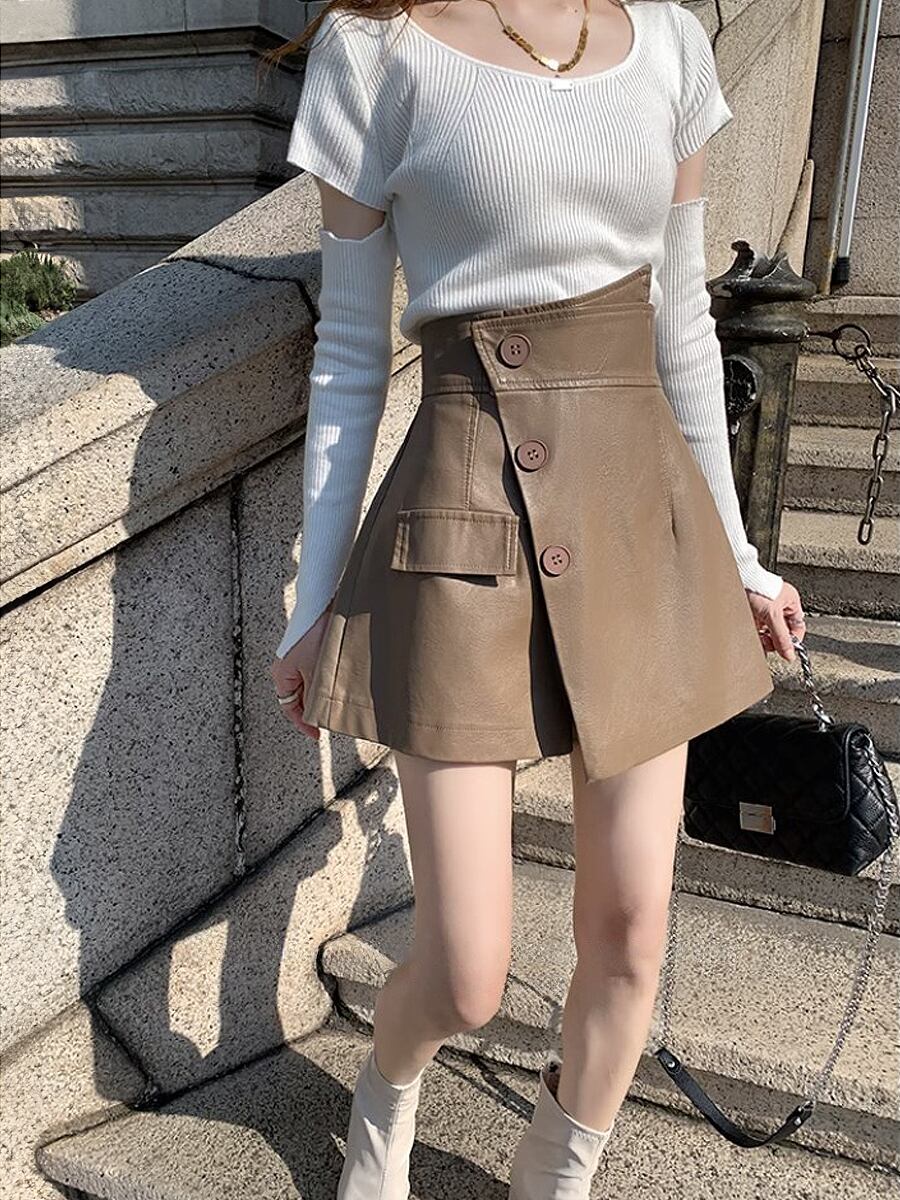 全2色 膝上PUレザーフェイクショートパンツ ショーパン ショートパンツ ウエスト後ろゴム 膝上 フェイクレザー PU ミニスカ ミニスカート かわいい 大人可愛い きれいめ シンプル おしゃれ お洒落 かっこいい レトロ こなれ感 ラブリー キュート ガーリー 個性的 モード系 モダン 主役級 存在感 抜け感 無地 レディース お出かけ 着回し 普段使い 韓国コーデ 韓国ファッション 黒 ブラック ベージュ