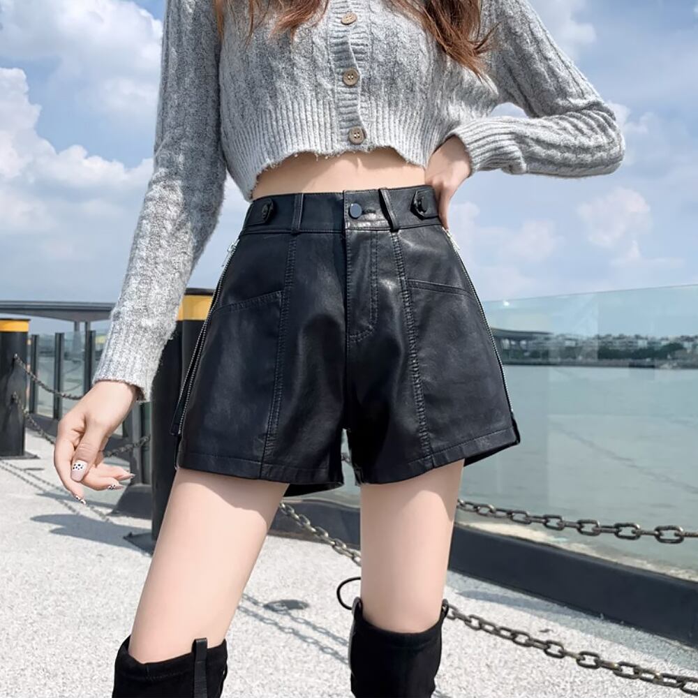 PUレザーサイドジップショートパンツ ショーパン ショートパンツ サイドファスナー 膝上 フェイクレザー PU ミニスカ ミニスカート かわいい 大人可愛い きれいめ シンプル おしゃれ お洒落 かっこいい レトロ こなれ感 ラブリー キュート ガーリー 個性的 モード系 モダン 主役級 存在感 抜け感 無地 レディース お出かけ 着回し 普段使い 韓国コーデ 韓国ファッション 黒 ブラック