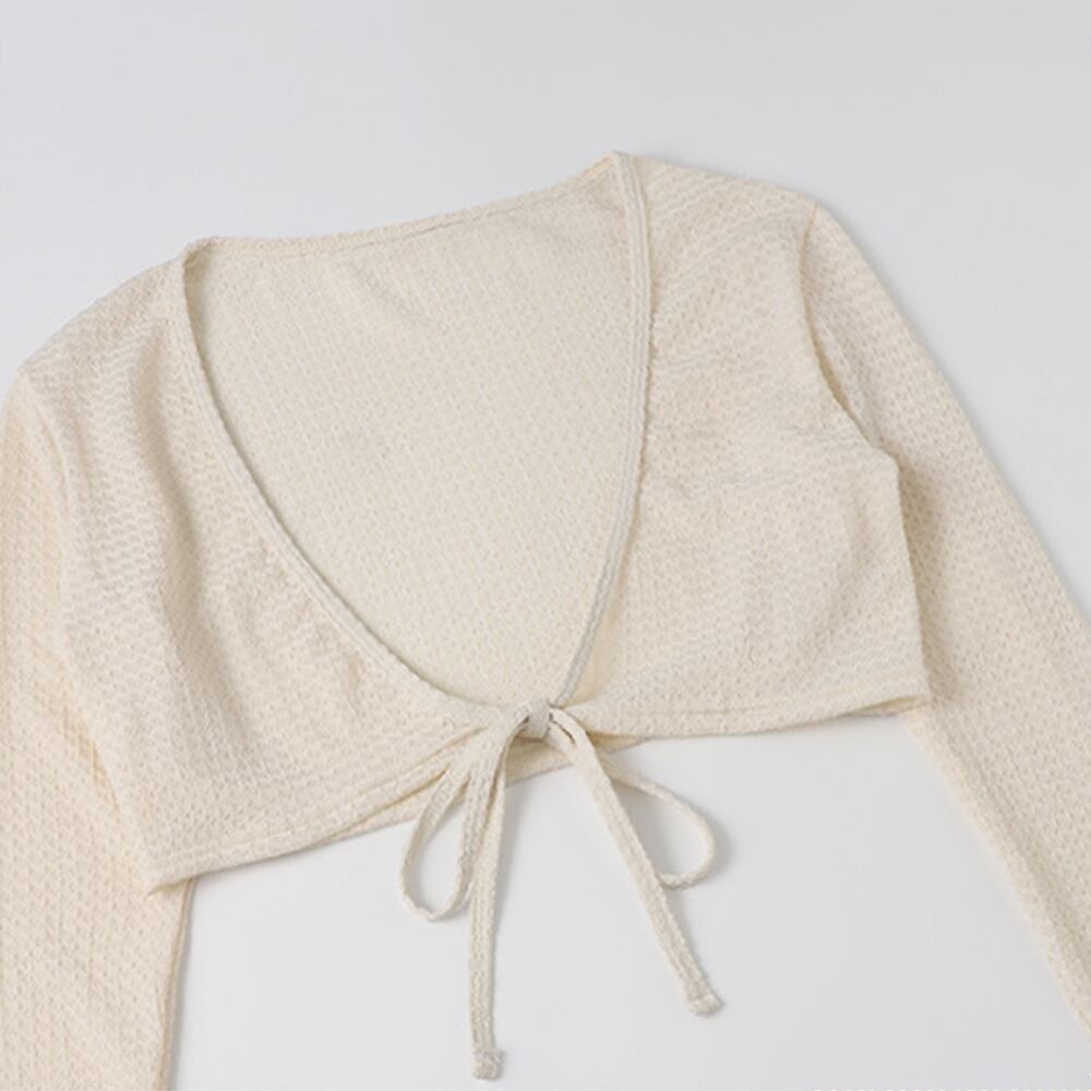 フロントツイストの水着ワンピースとボレロの2点セットです。