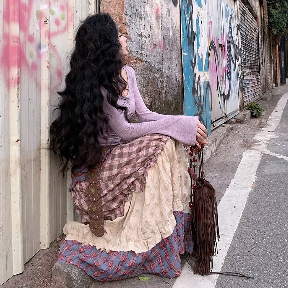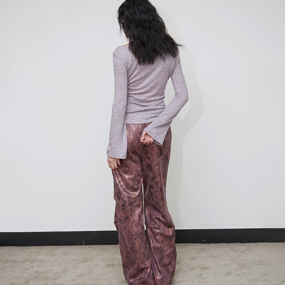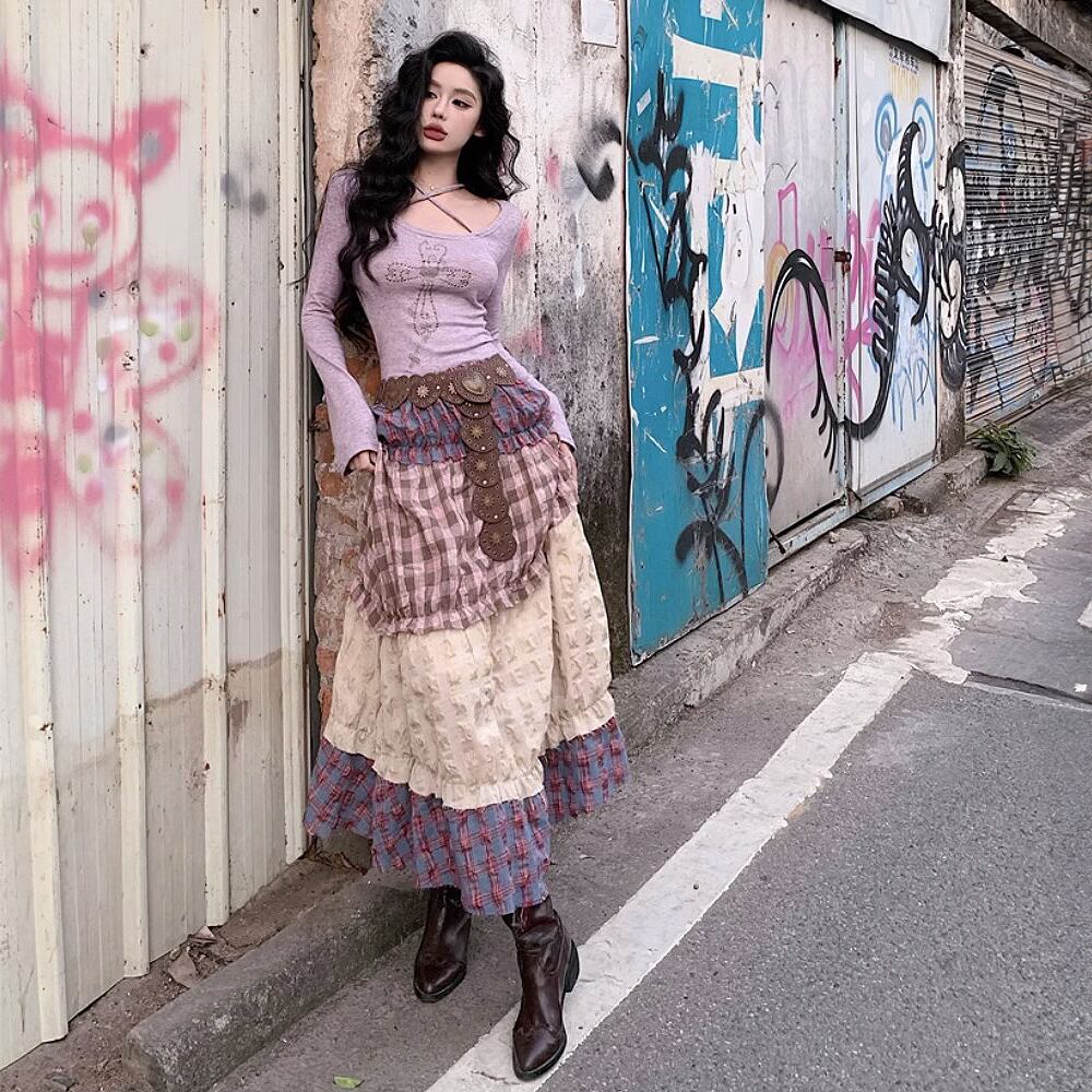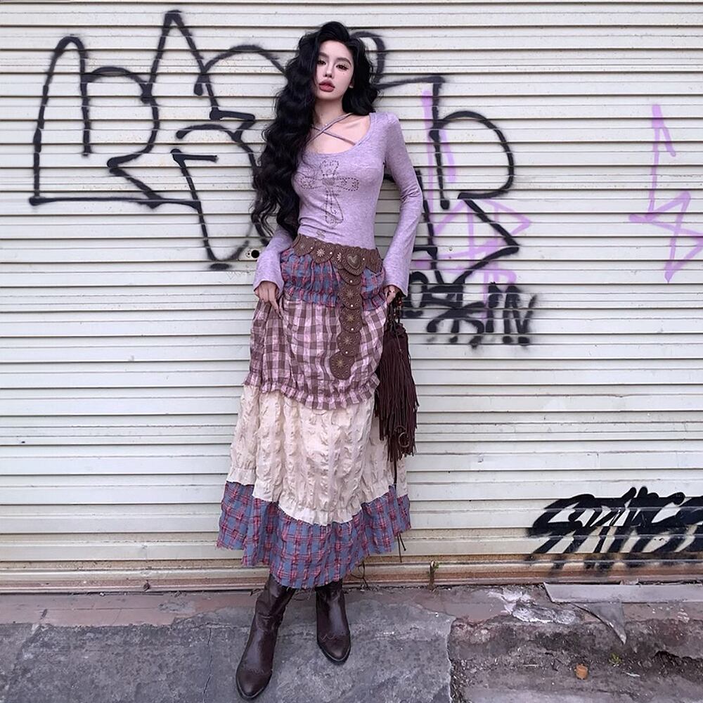 フロントクロス長袖Tシャツ Tシャツ 長袖 カットアウト チラ見せ フロントカットアウト クロス 十字架 春 秋 冬 ビジュー風デザイン ビジュー風 鎖骨チラ見せ 鎖骨クロス 交差 紫 パープル くすみカラー くすみパープル にじみカラー カジュアル おしゃれ かっこいい レトロ こなれ感 春 夏 レディース 個性的 デート お出かけ 普段使い 重ね着 韓国コーデ 韓国ファッション