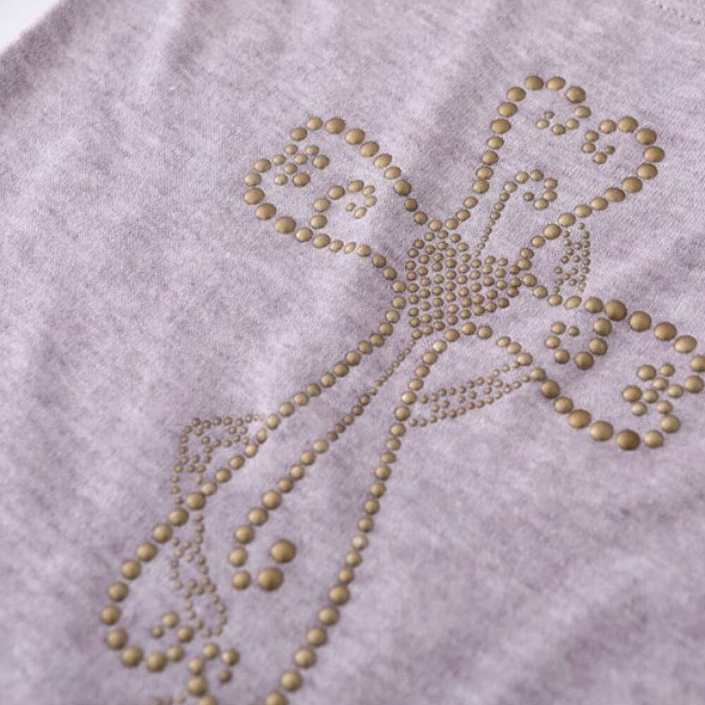 Tシャツはクロスデザイン、ベルトはハートと星のビジュー風デザインです。