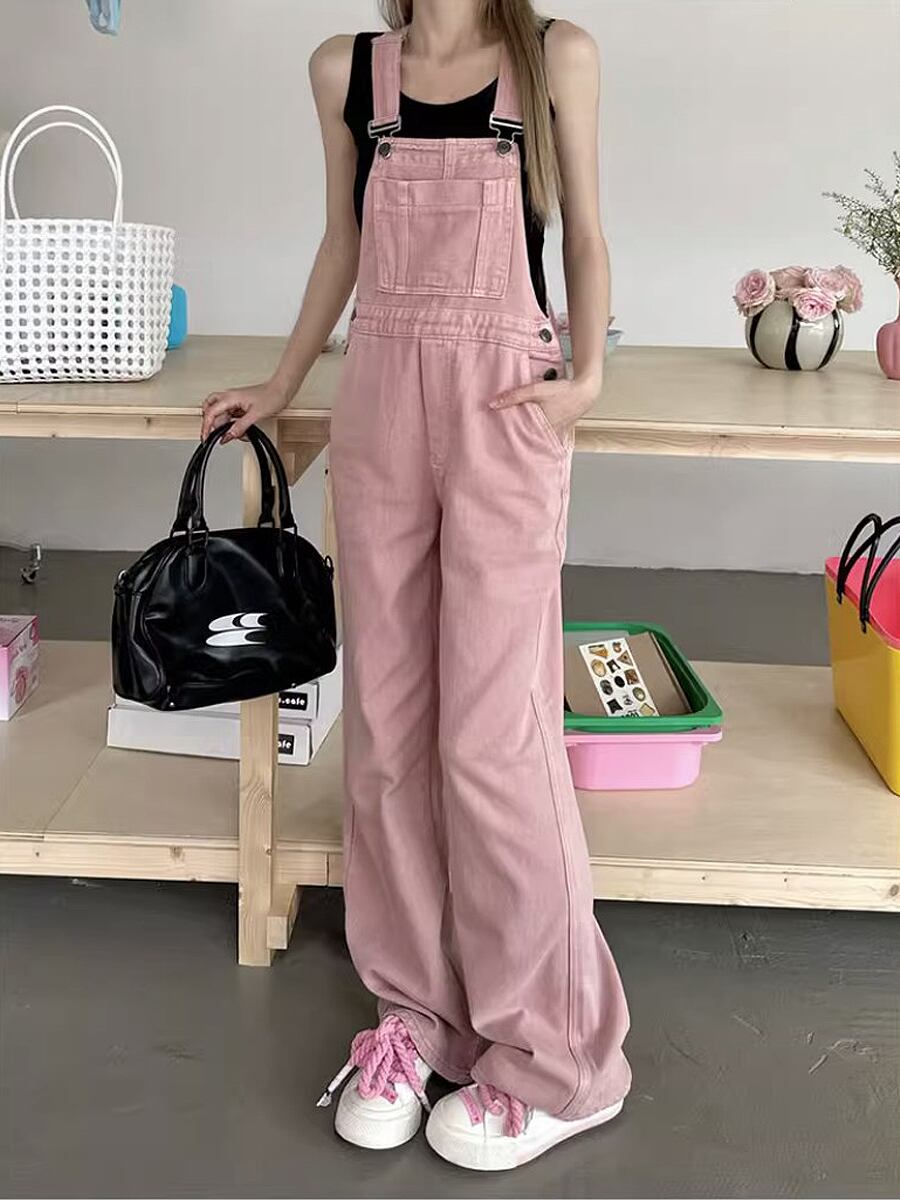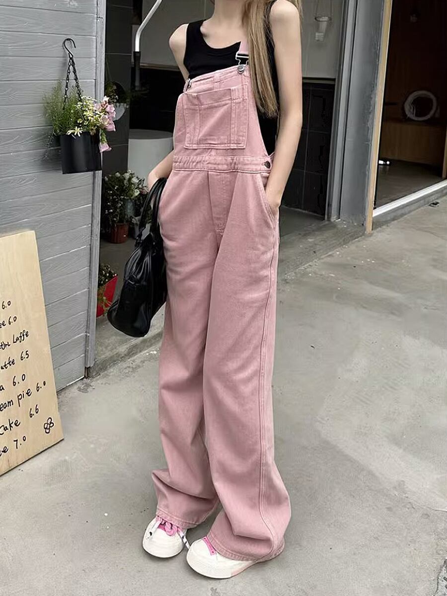 ピンクカラーデニムオーバーオール つなぎ デニム サロペットパンツ デニム つなぎ サロペット ジャンプスーツ オールインワン オーバーオール カバーオール コンビネゾン ピンク ベビーピンク レトロ アメカジ 動きやすい 楽ちん お家コーデ リラックスタイム くつろぎタイム カジュアル かわいい 大人可愛い 可愛い かっこいい おしゃれ 韓国系 オルチャン 韓国コーデ 韓国ファッション カラーデニム ピンク