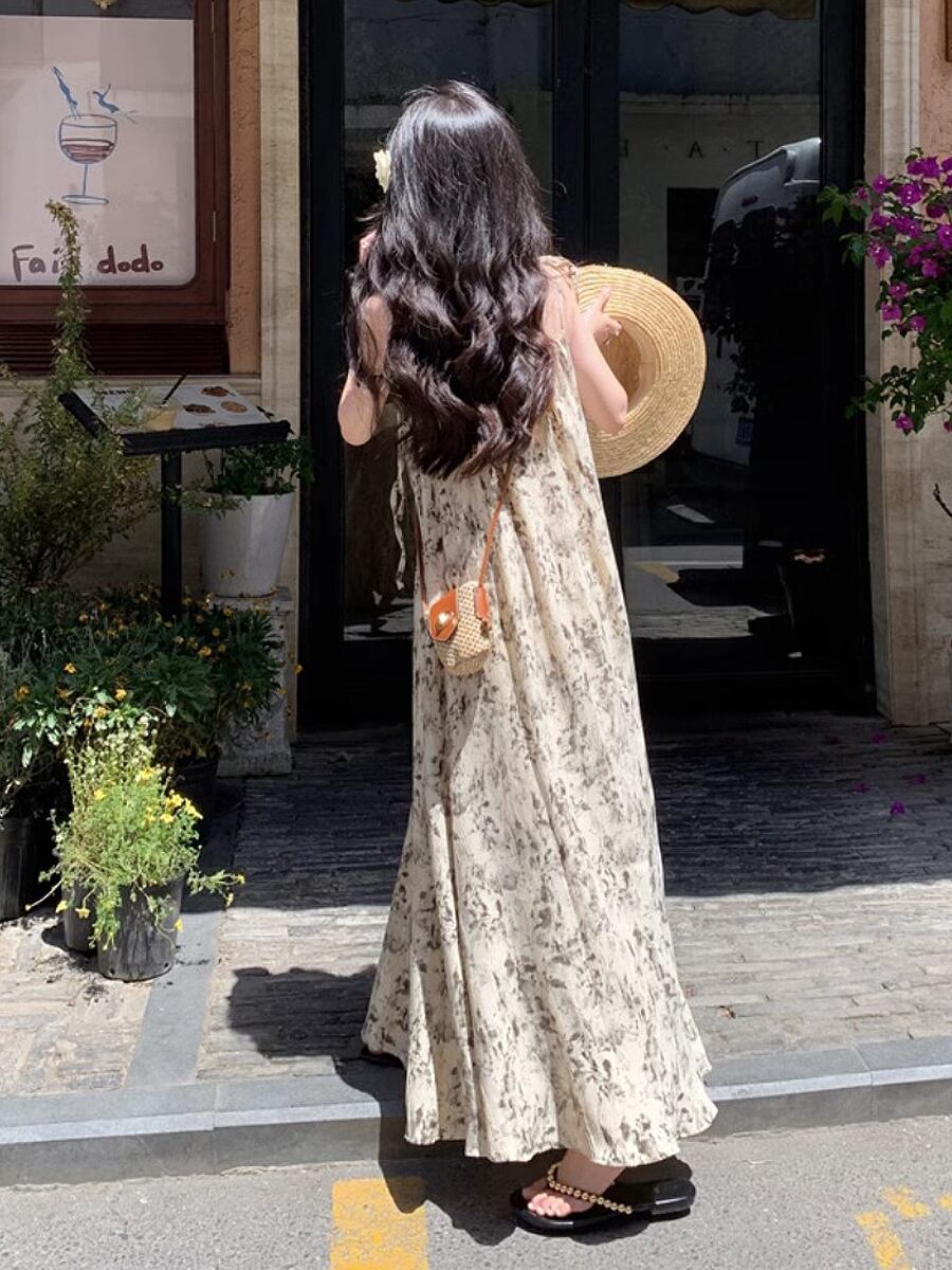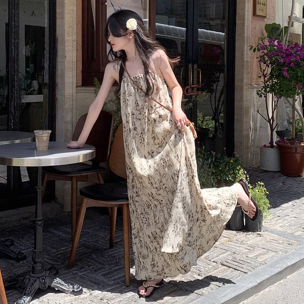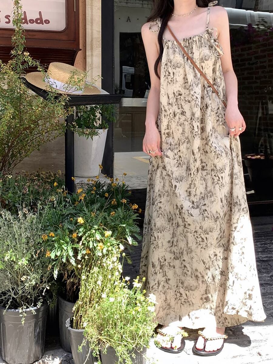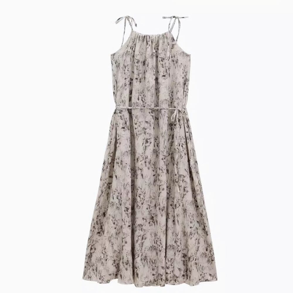 花柄の墨絵風ニュアンスカラーのキャミソールワンピースです。