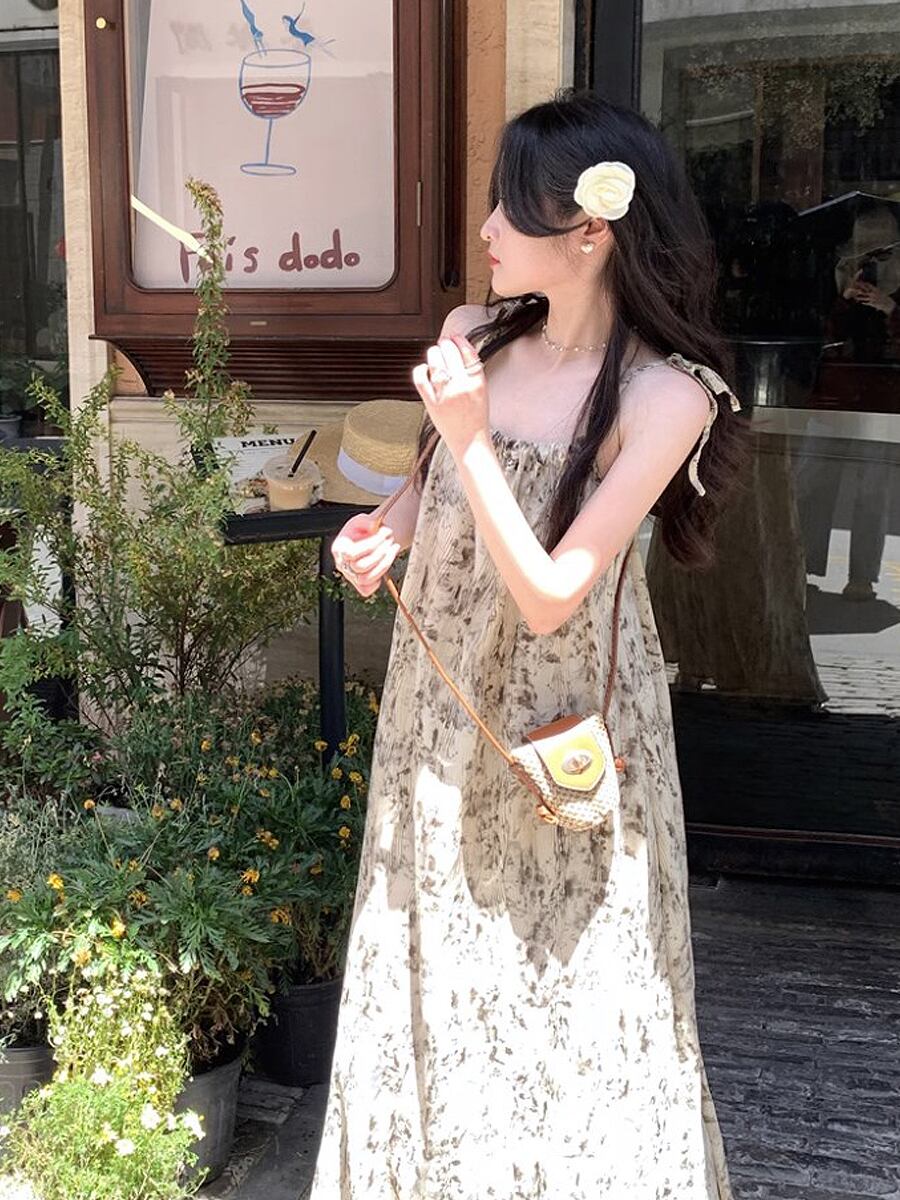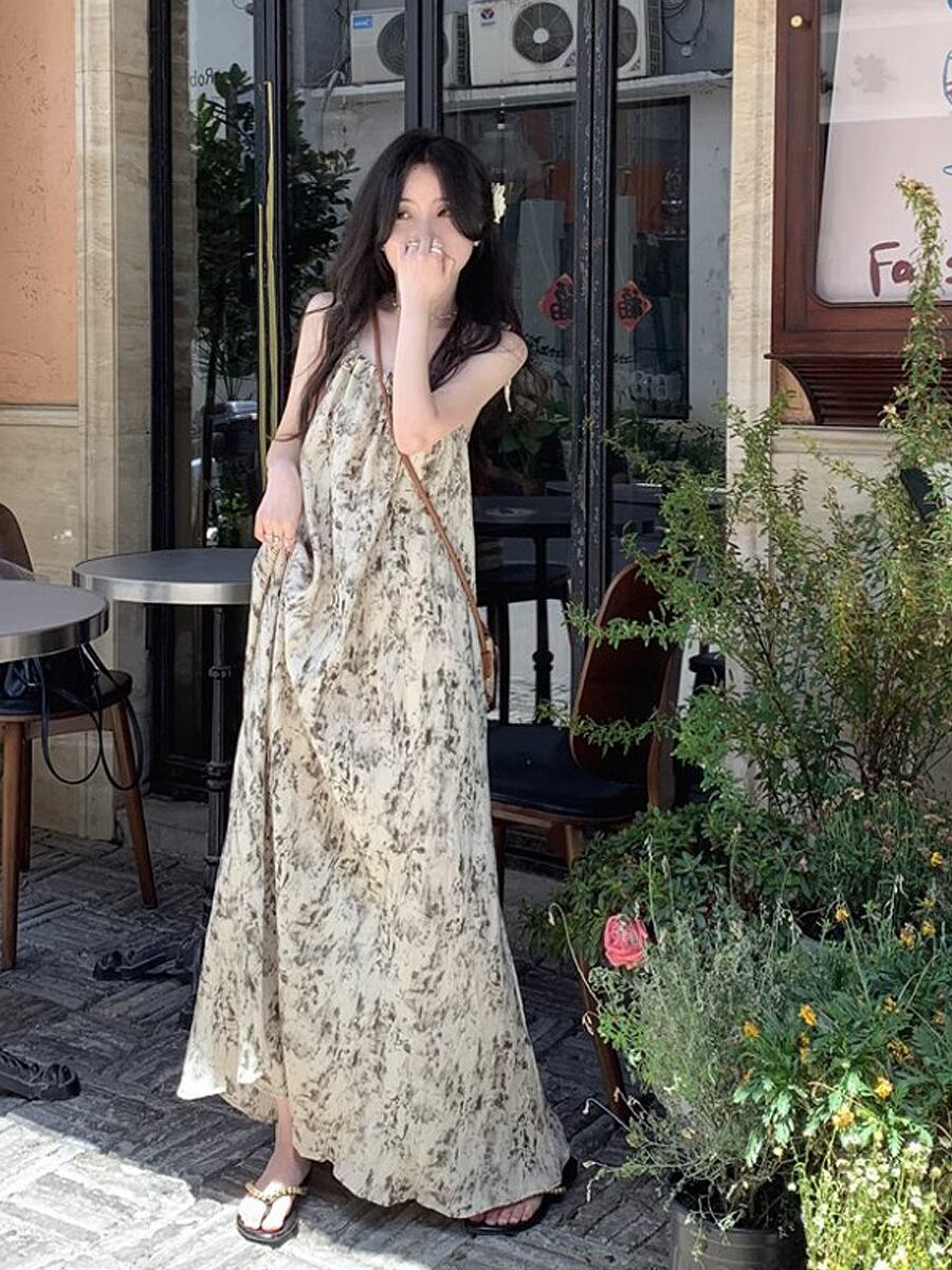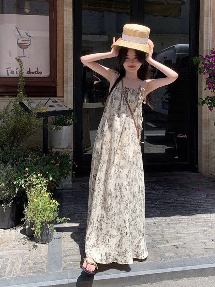 花柄の墨絵風ニュアンスカラーのキャミソールワンピースです。