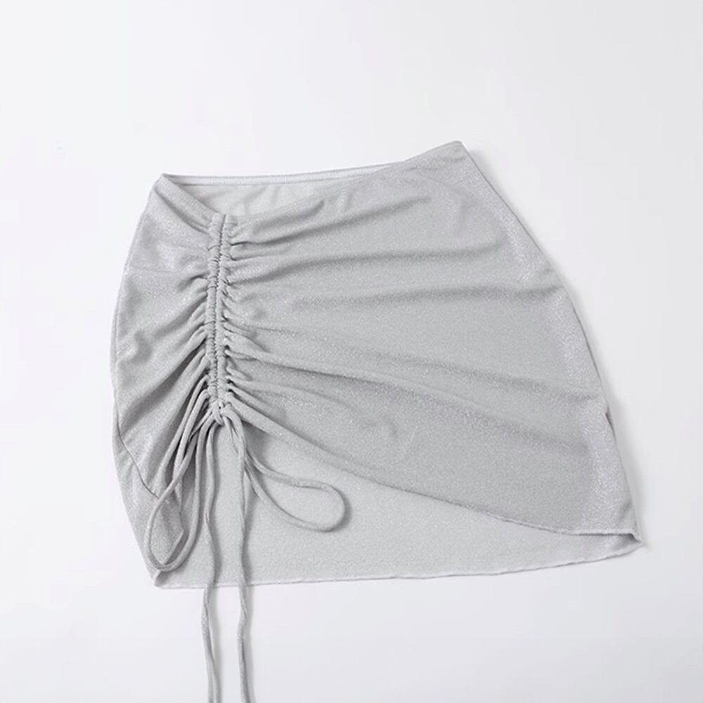 トップスバックがリボンで結ぶ可愛いアイテムで、パレオのスカートもドロストでセクシーです。