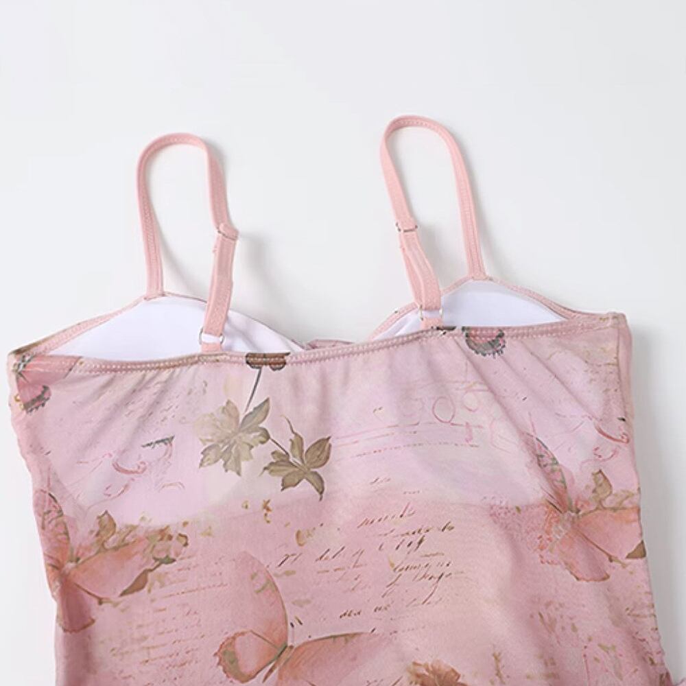 水着 蝶々柄ワンピース水着 スカート付き スカート付きワンピース水着 花柄 蝶々柄 ボタニカルプリント フレア パッド付き ノンワイヤー ラッフルリボン 足ぐり深め はき込み深め かわいい 大人可愛い シンプル 水遊び おしゃれ ラブリー キュート 個性的 かっこいい レディース 女性用 ママ ビーチ プール リゾート 旅行 体系カバー 美脚 脚長 スタイルアップ 美スタイル モテ インスタ映え 韓国コーデ 韓国ファッション ピンク