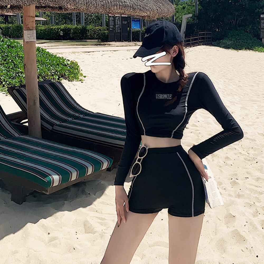 水着 長袖ビキニ スポーティセパレート水着 ツーピース ビキニ タンキニ セパレート 長袖 ラッシュガード水着 ショートパンツ フレア フィットネス 白黒 モノクロ ホワイト ブラック ラッシュガード ハート 二の腕カバー 体型カバー スポーティ 水遊び きれいめ フェミニン かわいい パッド付き ワイヤーなし 伸縮性 セット 上下セット かわいい 大人可愛い きれいめ セクシー おしゃれ スタイリッシュ 美脚 脚長 韓国コーデ 韓国ファション スイムウェア