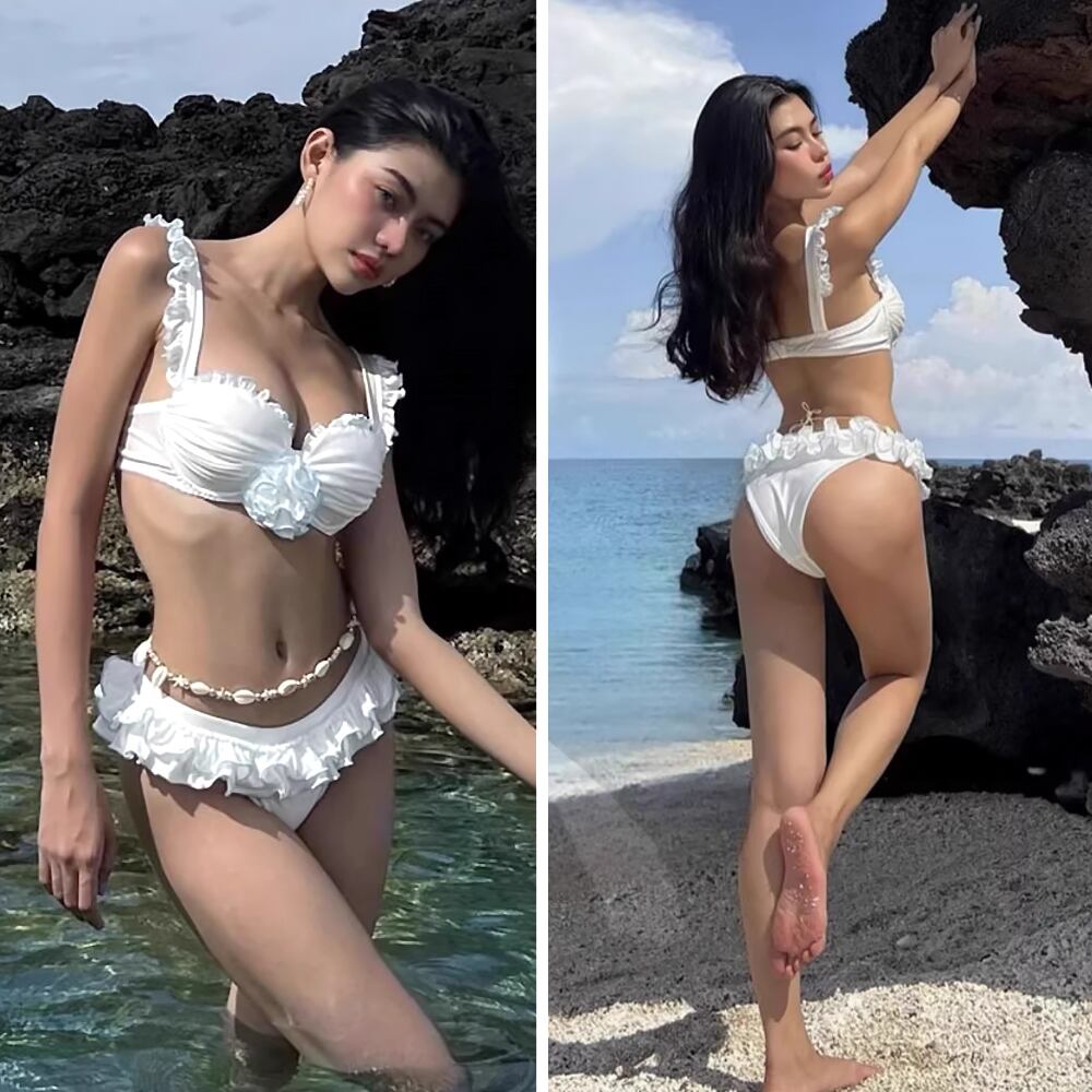 ビキニボトムの段々フリルがヒップアップにみせてくれ、脚長効果も期待できます。