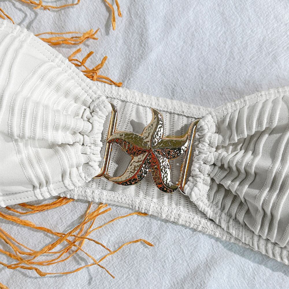 3点セット 水着 ビキニ 海星モチーフチューブトップビキニ上下+ロングパレオ 紐ビキニ ブラジリアンビキニ 露出多め セクシー ホワイト 白 チューブトップ ベアトップ 肩出し ヒトデ 海星モチーフ ヒトデモチーフ アミアミパレオ ロングパレオ サマーニットパレオ パット付き ワイヤーなし ノンワイヤー かわいい ガーリー 大人可愛い 大人っぽい おしゃれ ラブリー キュート レディース 女の子 海 ビーチ プール リゾート 美脚 脚長 着痩せ 韓国系 オルチャン 韓国ファション 韓国コーデ