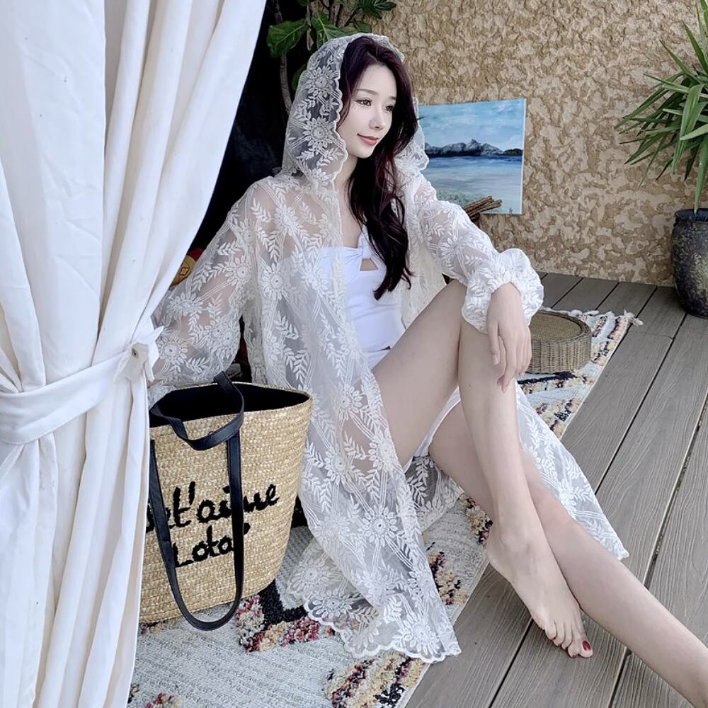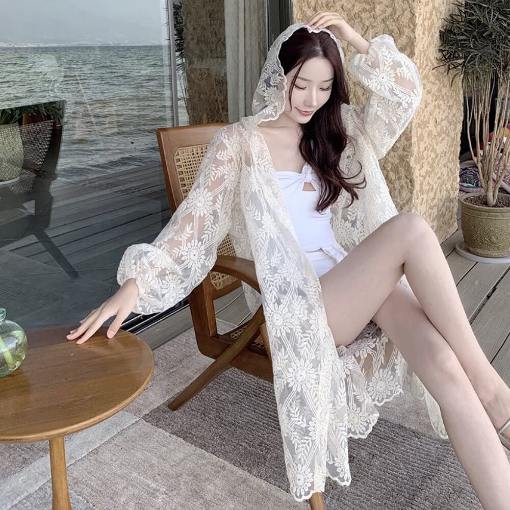 フード付き花柄レースロングカーディガン 夏カーディガン レースロングカーディガン ラッシュガード 長袖 サマーカーディガン 膝丈 海 レトロ 春 夏 アウター 羽織り 前ボタン レディース ゆったり ラフ 海 プール ビーチ リゾート 日焼け止め 冷え対策 大人 個性的 薄手 きれいめ セレブ 脚長 スタイルアップ おしゃれ デート お出かけ 存在感 こなれ感 抜け感 ゆったり 楽ちん 上着 デイリー インスタ映え 冷房対策 韓国コーデ 韓国ファション アイボリー 白 ホワイト