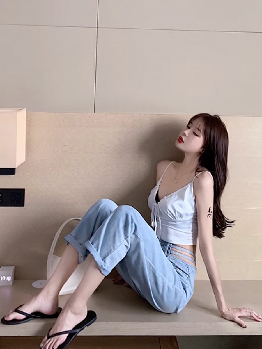 ウエストカットアウトデニムパンツ ハイウエスト アンクル丈 9分丈 春 夏 デニム ロングデニム ストレート セクシー ちら見せ ウエストちら見せ かわいい 大人可愛い ジーパン カジュアル 大人 おしゃれ お洒落 かっこいい 大人可愛い 大人女子 こなれ感 ラフ ラブリー キュート ガーリー 個性的 レディース 学生 通学 デート お出かけ 公園デビュー 女子会 休日 リゾート 旅行 韓国コーデ 韓国ファッション ライトブルー