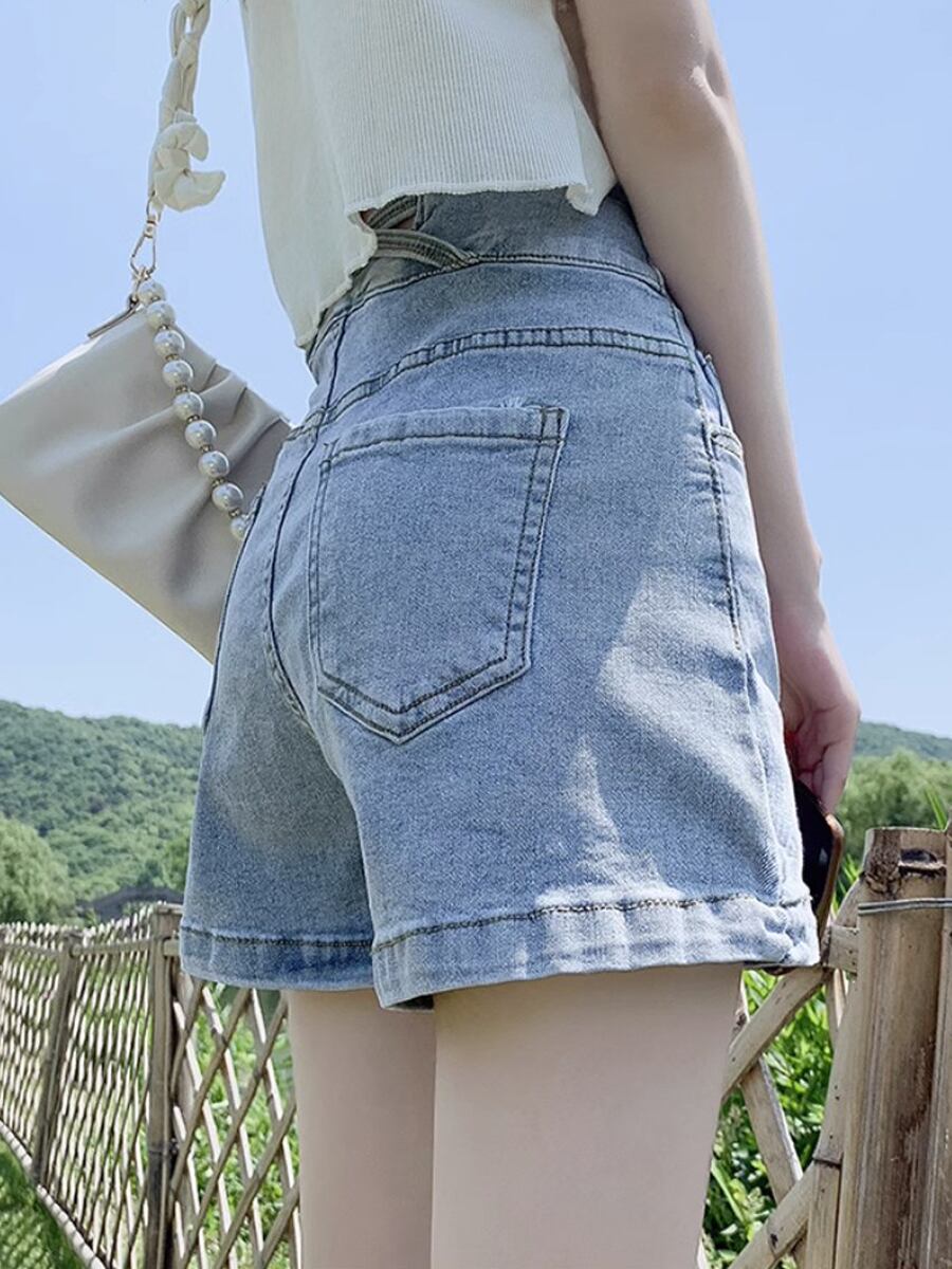 ウエストバックがカットアウトになっている春夏にぴったりのショートデニムパンツです。