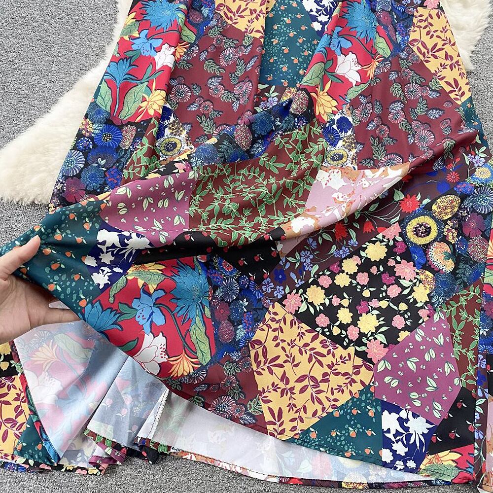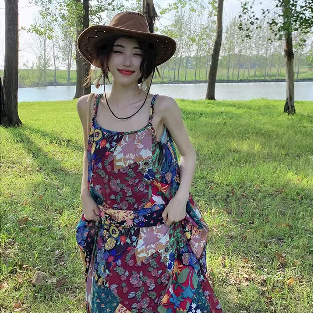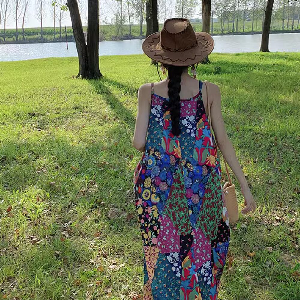 アメリカンレトロパッチワーク柄プリントキャミソールワンピース テントライン キャミワンピ キャミソールワンピース 夏ワンピ パッチワーク レトロ柄 花柄 小花柄 夏ワンピ サマードレス ワンピドレス ロング ロング丈 マキシフレア Aライン 切り替えデザイン スマート かわいい 大人可愛い きれいめ シンプル カジュアル 上品 おしゃれ お洒落 かっこいい レトロ 大人女子 こなれ感 ラフ ラブリー キュート 個性的 クール モード系 エレガント 韓国コーデ 韓国ファッション