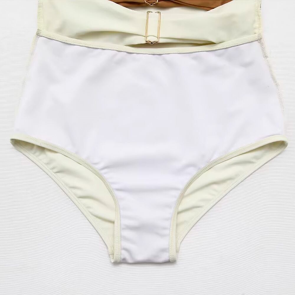2点セット 水着ワンピース フロントカットアウト水着ワンピース+ミニスカート パレオ フロントカット ゴールド留め具 チョコレートブラウン キャラメルブラウン モカ 茶色 オフホワイト アイボリー 水着ワンピ ワンピース水着 ゴールド キラキラ感 キラキラ スカート パッド付き ノンワイヤー シック ゴージャス 高見え 大人可愛い おしゃれ キュート レディース ビーチ プール リゾート 旅行 体系カバー 美脚 脚長 スタイルアップ モテ インスタ映え 韓国コーデ 韓国ファッション