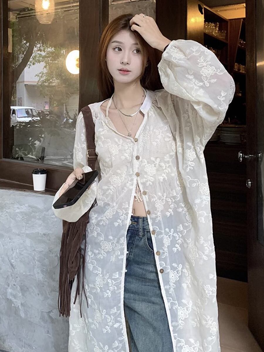 レースロングカーディガンシャツブラウス シャツ ブラウス カーディガン ラッシュガード 長袖 サマーカーディガン レース 綿レース コットンレース 海 レトロ 春 夏 アウター 羽織り レディース ゆったり ラフ 海 プール ビーチ リゾート 日焼け止め 冷え対策 かっこいい 大人 個性的 薄手 きれいめ セレブ カワイイ 脚長 おしゃれ デート お出かけ 存在感 こなれ感 抜け感 楽ちん 上着 デイリー インスタ映え 冷房対策 韓国コーデ 韓国ファション アイボリー 白 ホワイト
