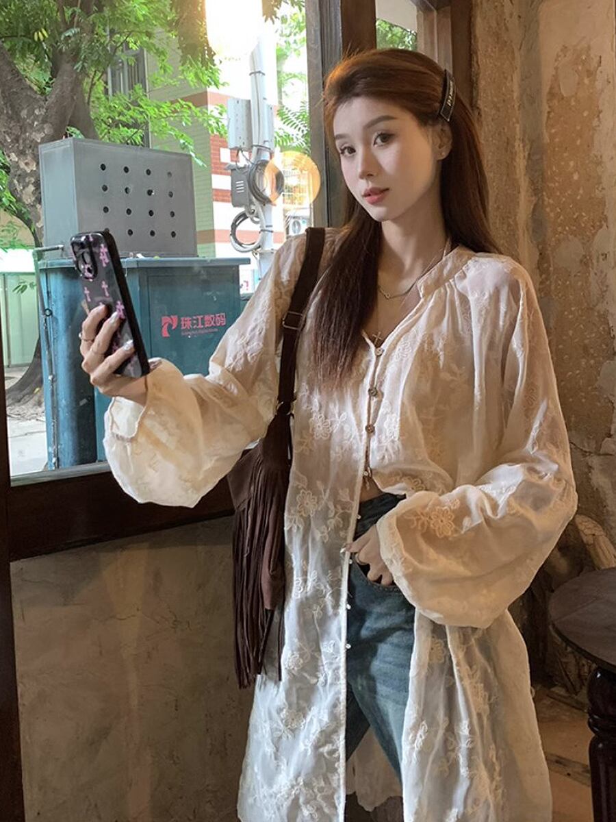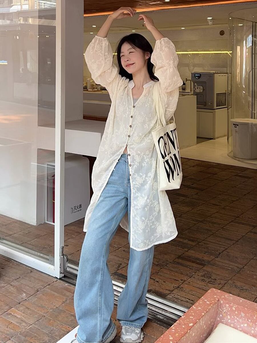 春夏のロングカーディガンシャツ、シャツブラウスです。