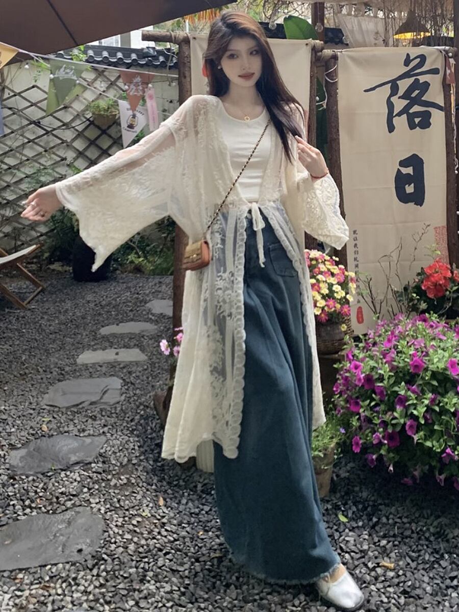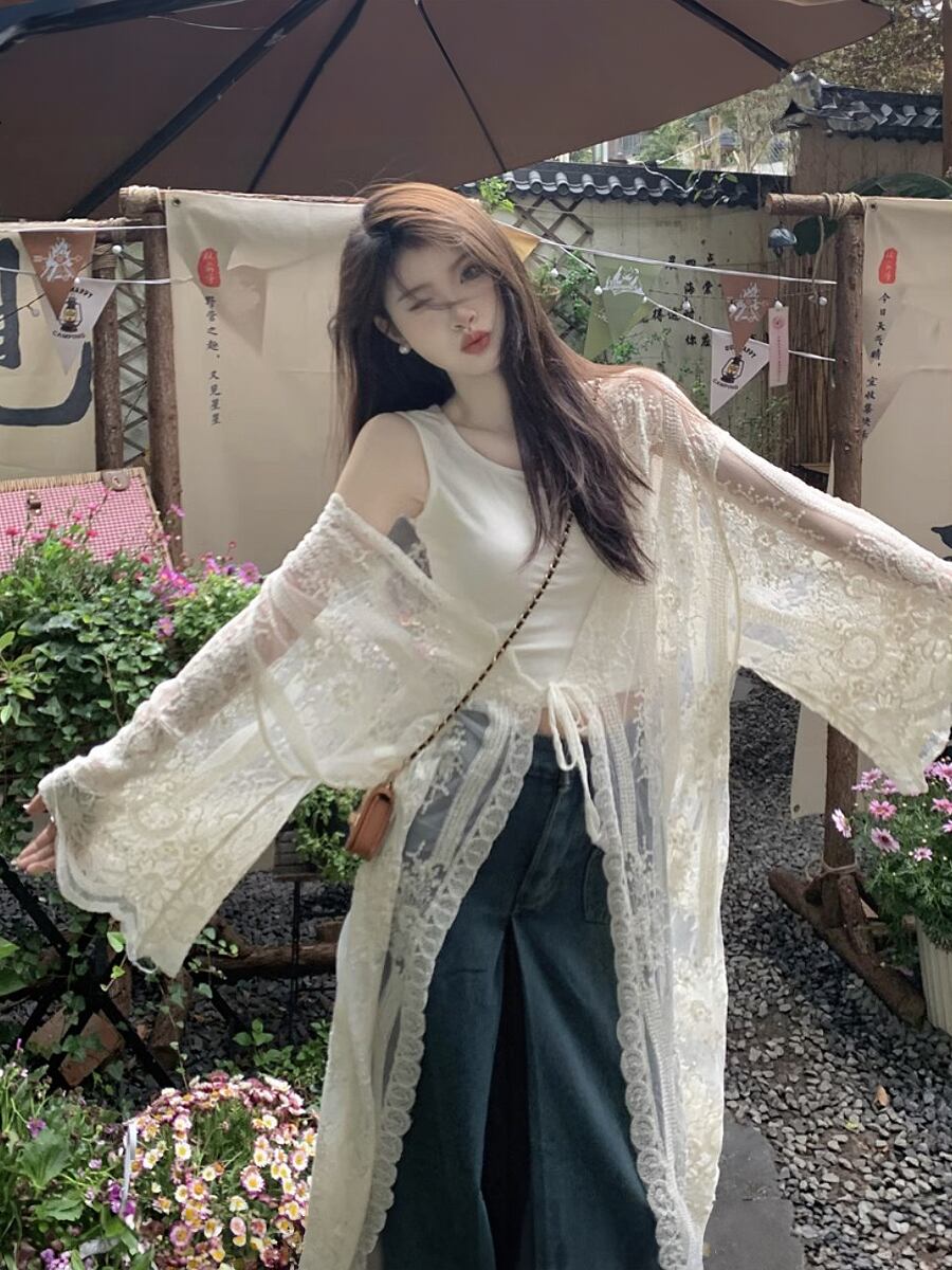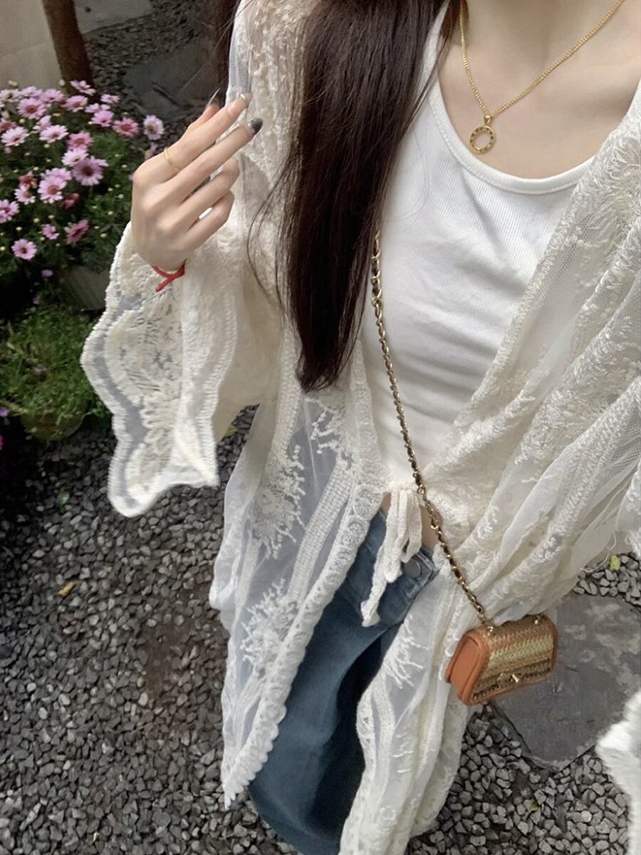 フロントリボン総レースロングカーディガン フロントリボンカーディガン フロントリボン カーディガン ラッシュガード 長袖 サマーカーディガン レース 海 レトロ 春 夏 アウター 羽織り ワイドスリーブ レディース ゆったり ラフ 海 プール ビーチ リゾート 日焼け止め 冷え対策 かっこいい 大人 個性的 薄手 きれいめ セレブ おしゃれ デート お出かけ 存在感 こなれ感 抜け感 楽ちん 上着 デイリー インスタ映え 冷房対策 韓国コーデ 韓国ファション アプリコット