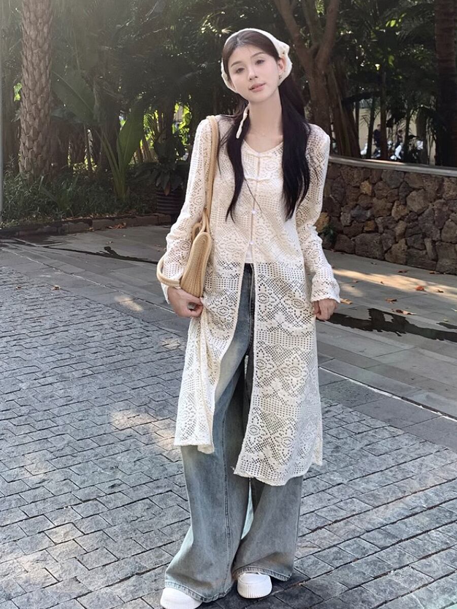 フロッグボタン総レースロングカーディガン カーディガン パンコウ チャイナボタン カーディガン ラッシュガード 長袖 サマーカーディガン レース 海 レトロ 春 夏 アウター 羽織り ワイドスリーブ レディース ゆったり ラフ 海 プール ビーチ リゾート 日焼け止め 冷え対策 かっこいい 大人 個性的 薄手 きれいめ セレブ おしゃれ デート お出かけ 存在感 こなれ感 抜け感 楽ちん 上着 デイリー インスタ映え 冷房対策 韓国コーデ 韓国ファション アプリコット アイボリー