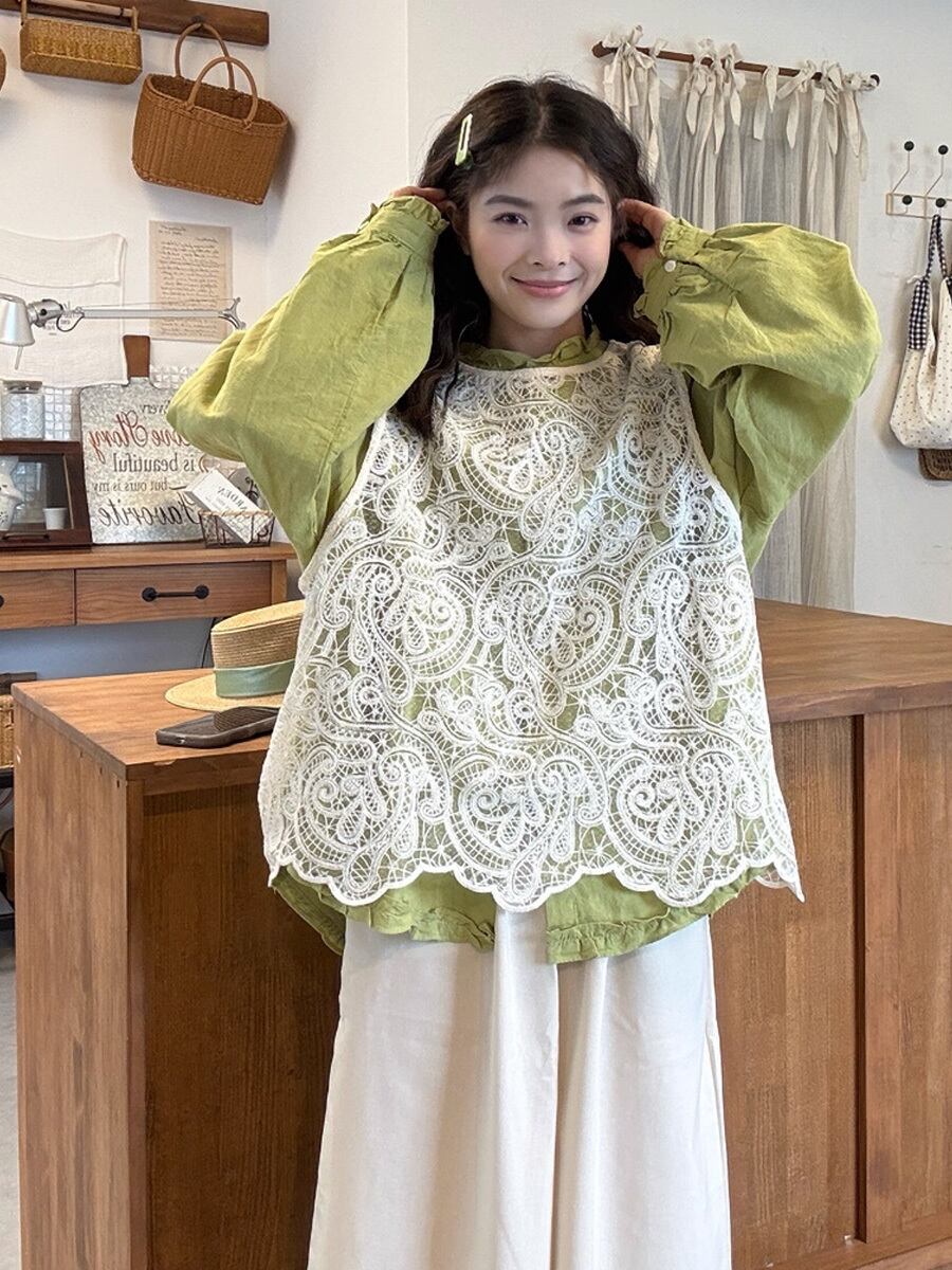 網のようなレースのベスト、ジレです。