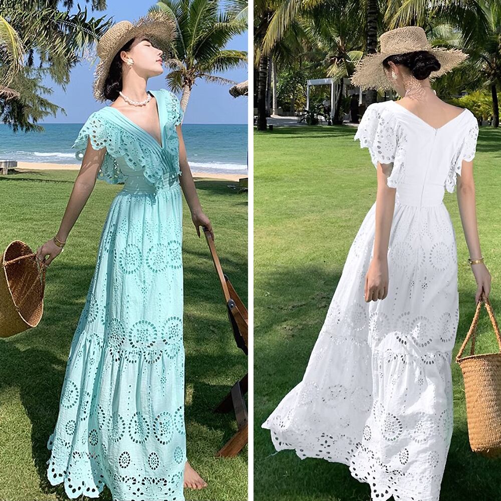 全2色 Vネックコットンレースロングワンピース 肩フリル 切り替えデザイン フリル Vネック Aライン ギャザー フレア レース 綿レース ワンピース 可愛い カジュアル 大人 おしゃれ 大人可愛い 大人女子 キュート ガーリー 春 夏 大人可愛い きれいめ シンプル 大人 上品 おしゃれ 大人女子 レディース 通学 デート お出かけ 女子会 イベント リゾート 旅行 普段使い 休日 ホワイト ブラック ブルー お揃い オルチャン 韓国コーデ 韓国ファッション 白 青 ターコイズブルー