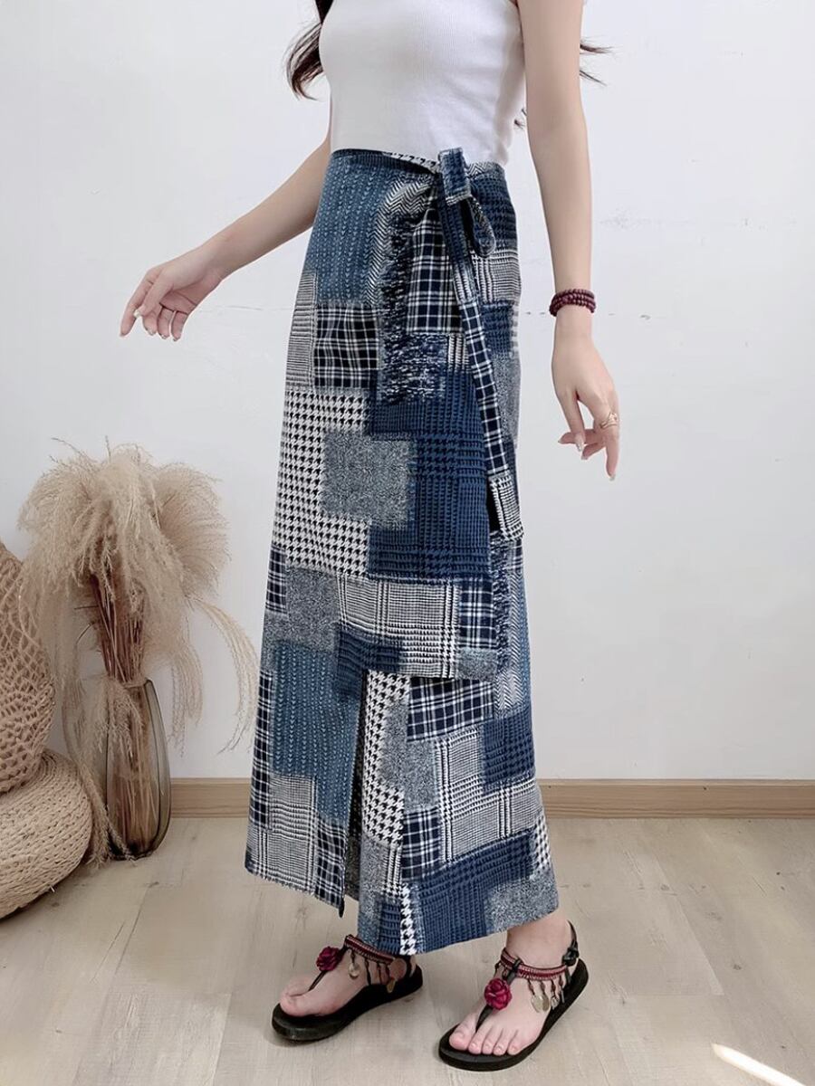 巻きスカート ラップスカート リネン 綿麻 天然素材 不規則 アシンメトリー リボン結び リボン パッチワーク風 つぎはき風 民族風 エスニック ボヘミアン フォークロア ロークロア 可愛い カジュアル 大人 おしゃれ 大人可愛い 大人女子 キュート 清潔感 大人可愛い きれいめ シンプル 大人 上品 おしゃれ 大人女子 レディース デート お出かけ リゾート 旅行 普段使い オルチャン 韓国コーデ 韓国ファッション 青 ブルー