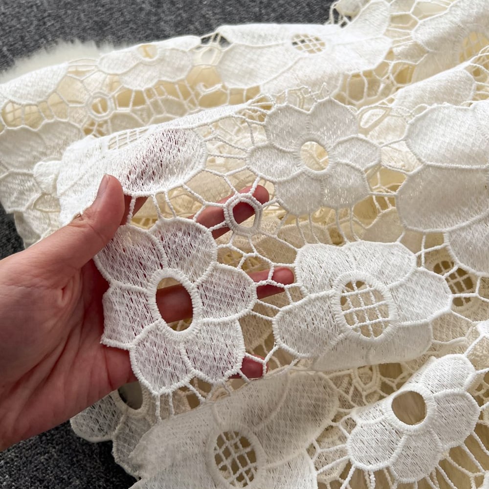 膝下のレースの透け感がきれいな夏ワンピです。