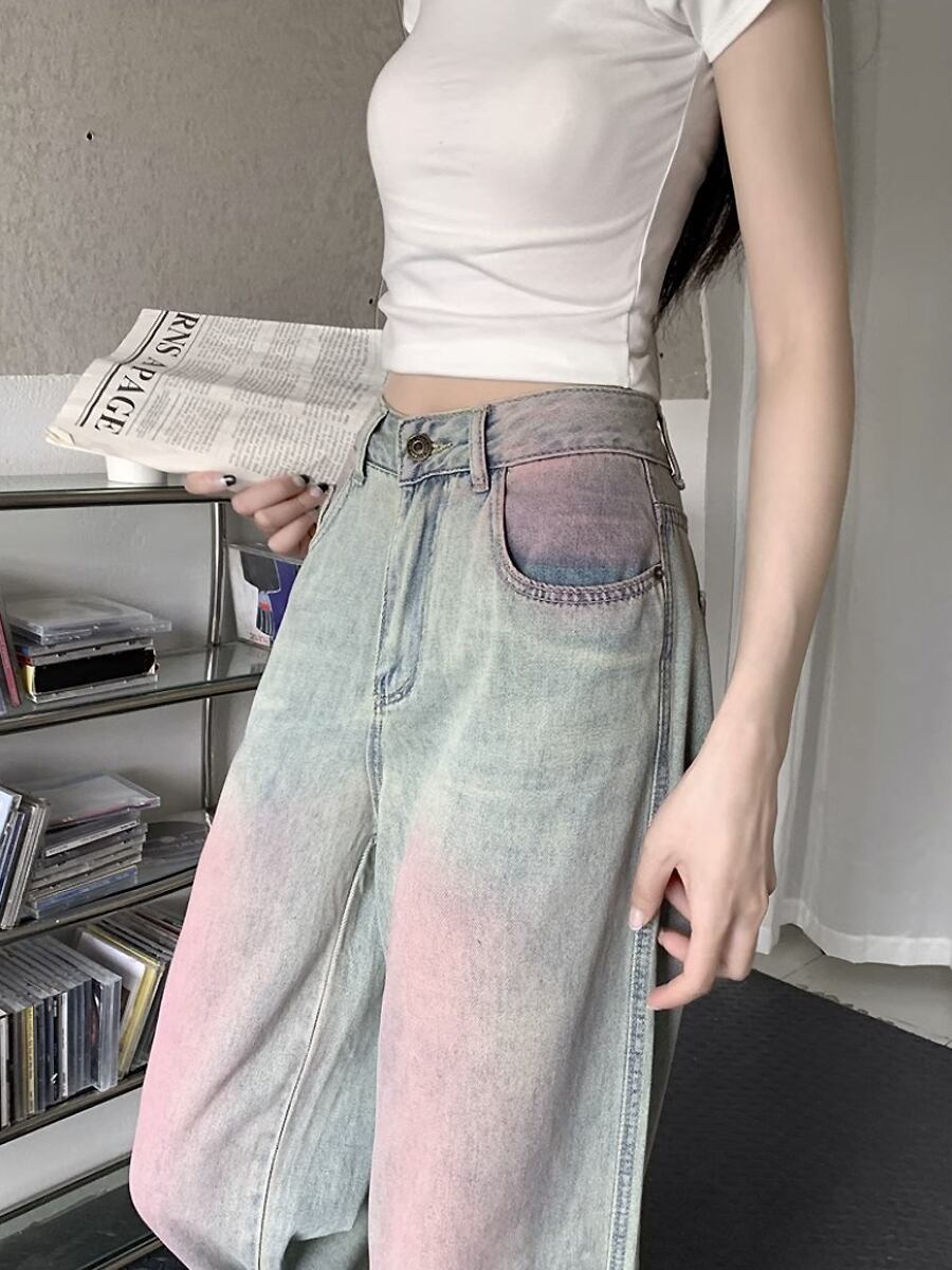 長さ2種類 ブラッシュピンクロングデニムパンツ ピンク ハイウエスト ワイドシルエット ブラッシュペイント ワイド ストリート 部分ピンク ジーンズ ジーパン フロアモップパンツ パンツ かわいい 大人可愛い きれいめ カジュアル ストリート系 大人 おしゃれ お洒落 かっこいい 大人可愛い 大人女子 こなれ感 ラフ ラブリー キュート ガーリー 個性的 レディース 学生 通学 デート 韓国コーデ 韓国ファッション 春 夏