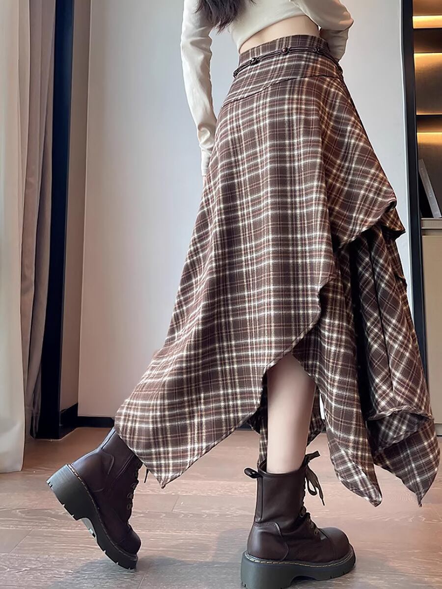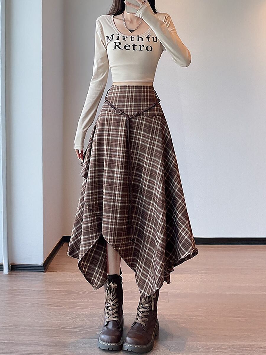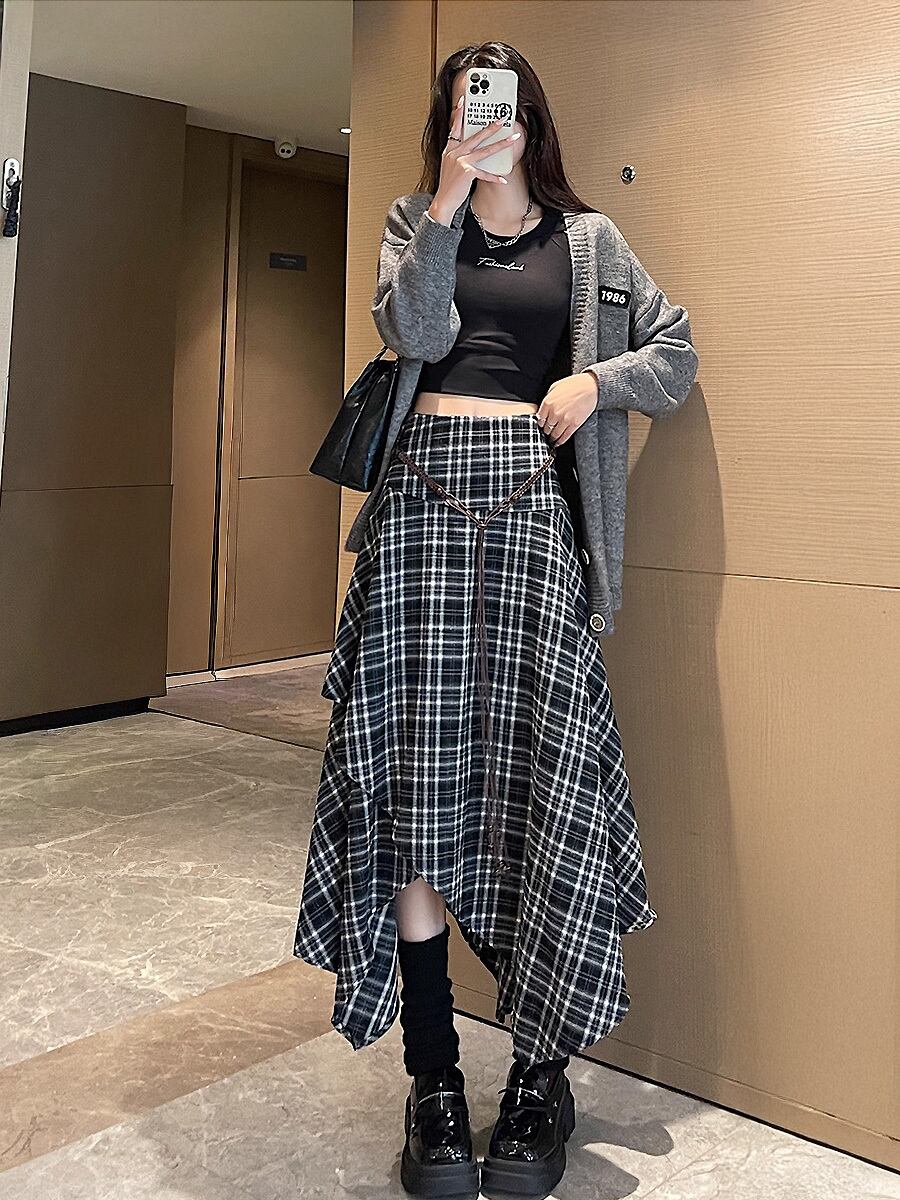 全2色 タータンチェック柄アシンメトリーフレアロングスカート フレア あったか ハイウエスト 秋冬 ロング 斜めカット チェック柄 タータンチェック 黒 ブラック 茶色 ブラウン あったかコーデ きれいめ シンプル 大人 上品 おしゃれ お洒落 かっこいい レトロ 大人可愛い 大人女子 秋 冬 レディース 通勤 学生 通学 デート お出かけ 普段使い ファッション モテ 美脚 韓国コーデ 韓国ファッション ウエストポイント 細見え