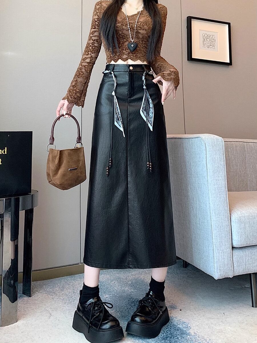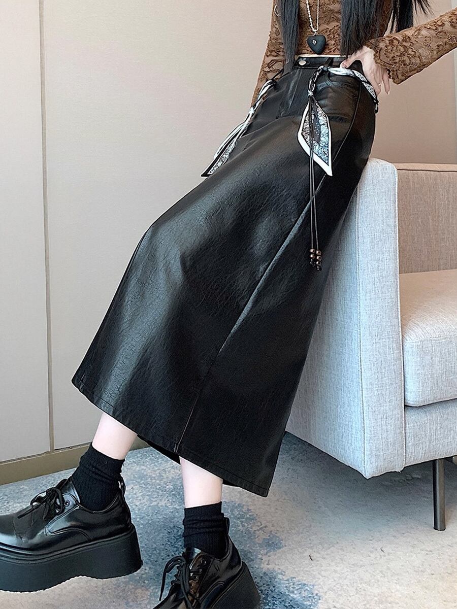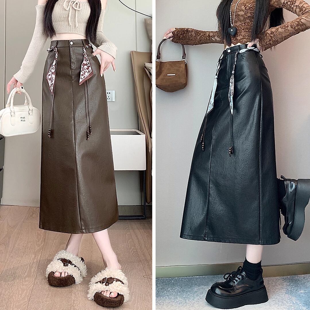 全2色 スカーフベルト付きPUレザーロングスカート フェイクレザー タイト あったか 秋冬 マキシ ロング ロングスカート ハイウエスト スカート ベルト付き スカーフベルト おしゃれベルト かわいい セクシー 大人可愛い きれいめ シンプル カジュアル 上品 おしゃれ かっこいい レトロ こなれ感 ラブリー キュート 楽ちん 個性的 モード系 エレガント モダン 主役級 存在感 抜け感 柄 レディース 着回し お出かけ 韓国コーデ 韓国ファション 黒 ブラック 茶色 ブラウン