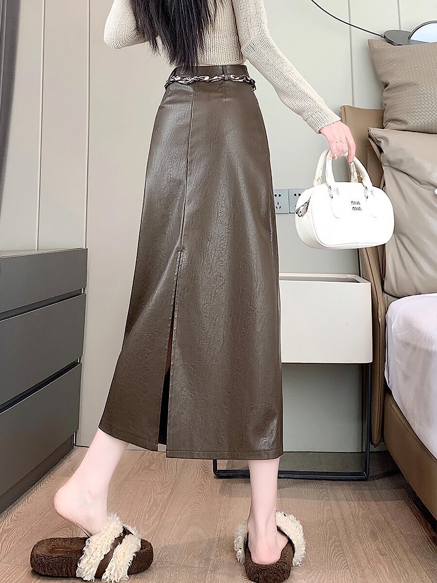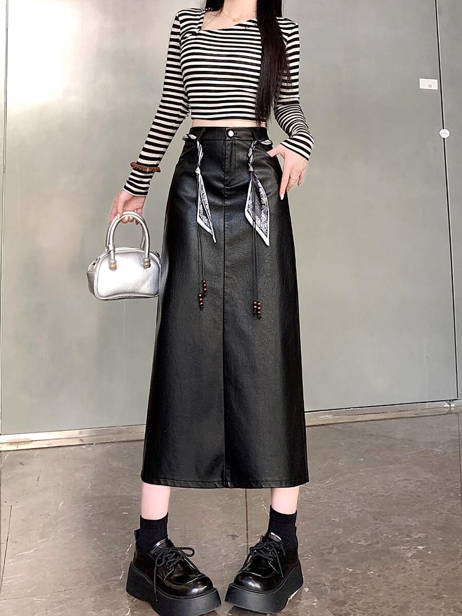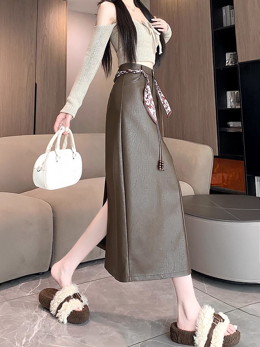 全2色 スカーフベルト付きPUレザーロングスカート フェイクレザー タイト あったか 秋冬 マキシ ロング ロングスカート ハイウエスト スカート ベルト付き スカーフベルト おしゃれベルト かわいい セクシー 大人可愛い きれいめ シンプル カジュアル 上品 おしゃれ かっこいい レトロ こなれ感 ラブリー キュート 楽ちん 個性的 モード系 エレガント モダン 主役級 存在感 抜け感 柄 レディース 着回し お出かけ 韓国コーデ 韓国ファション 黒 ブラック 茶色 ブラウン