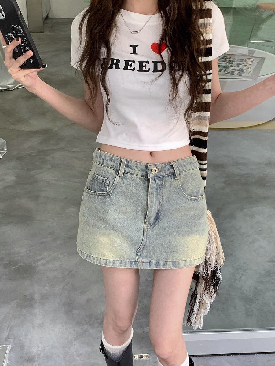 全2色 デニムバックロゴ刺繍ミニスカート ヒップスカート ライトブルー ブルー ブラック 黒 ミニスカート スカート デニムスカート インナーパンツ付き ペチパンツ キュロットスカート 後ろステッチ バックポケット刺繍 ロゴ デザインロゴ デニム ダメージ加工 ウォッシュ加工 かわいい 大人可愛い きれいめ シンプル おしゃれ かっこいい レトロ こなれ感 ラブリー キュート ガーリー 個性的 主役級 存在感 レディース 着回し 普段使い 韓国コーデ 韓国ファッション