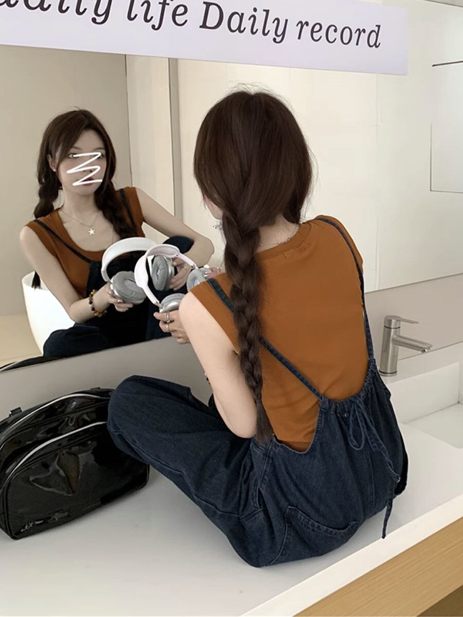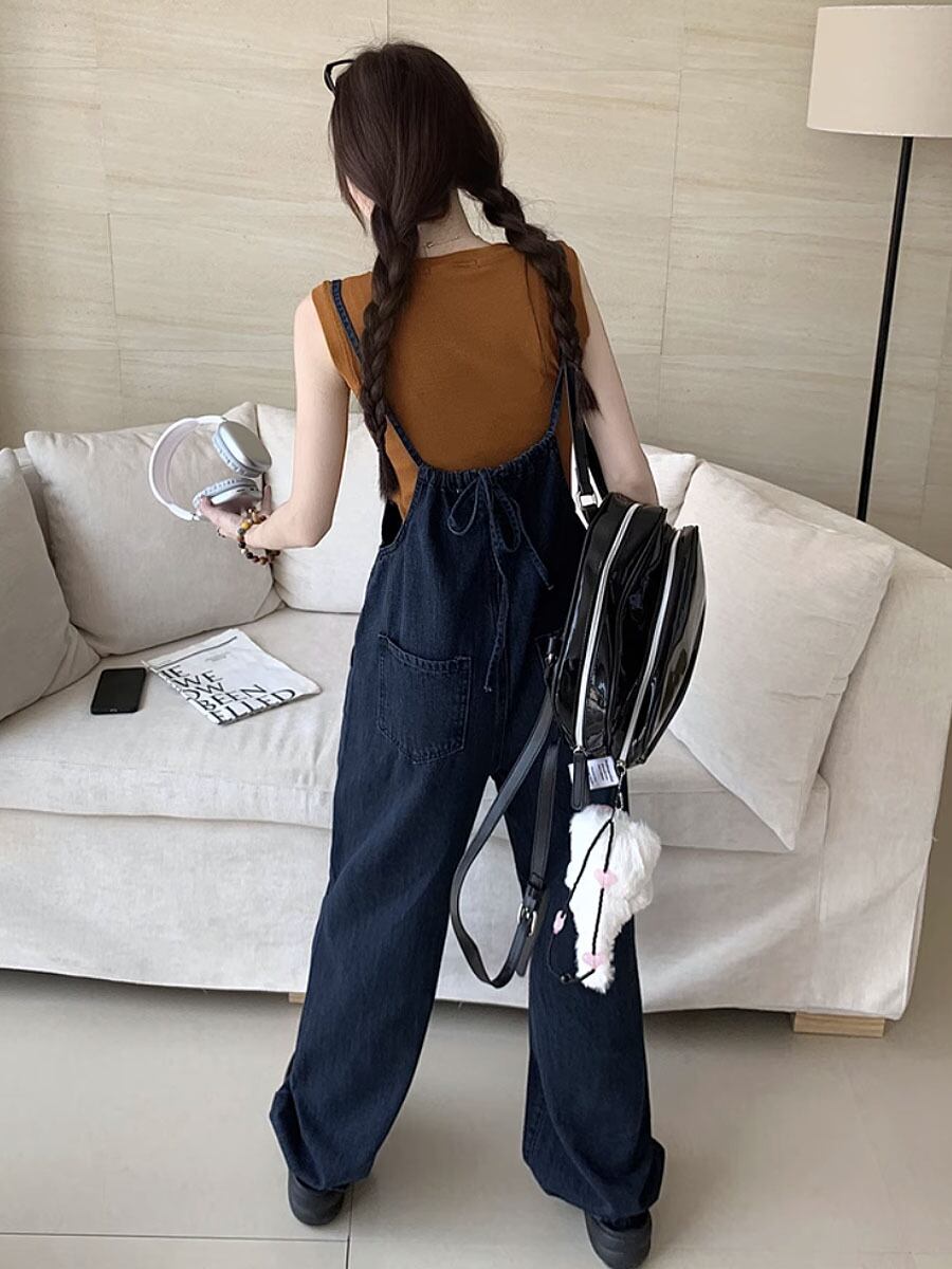 デニムサマーオールインワン インディゴブルー 紐調節 バックリボン 背中リボン ドロスト つなぎ フレアパンツ セミフレアパンツ サロペット オールインワン ジャンプスーツ オーバーオール ワイドパンツ セミワイドシャーリング かわいい 大人可愛い きれいめ シンプル カジュアル 大人 上品 おしゃれ かっこいい ガーリー ラフ キュート ルーズ 抜け感 無地 春 夏 レディース デート お出かけ 旅行 海 プール 普段使い 楽ちん モテ 韓国コーデ 韓国ファッション