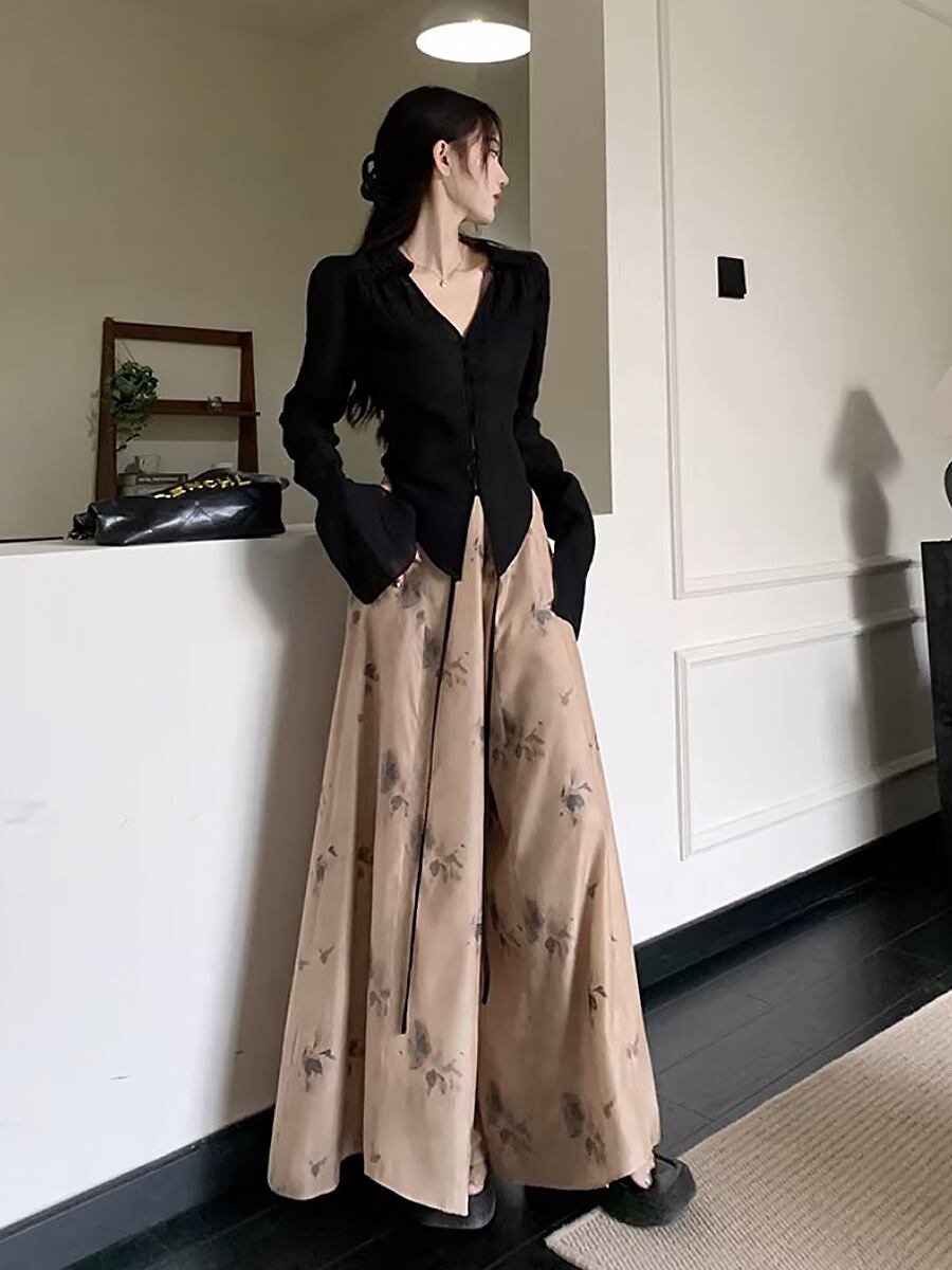 アースカラー花柄ワイドロングパンツ ワイドパンツ 幅広ズボン 幅広 ドレープ フロアパンツ 幅広パンツ ロング ロングパンツ フレアパンツ フレア ハイウエスト ワイド アースカラー かわいい 大人可愛い きれいめ シンプル カジュアル 上品 おしゃれ お洒落 かっこいい レトロ 大人女子 こなれ感 ラフ ラブリー キュート ガーリー 個性的 エレガント モダン 主役級 存在感 抜け感 無地 デート お出かけ 韓国コーデ 韓国ファッション ライトブラウン ダークオレンジ くすみカラー