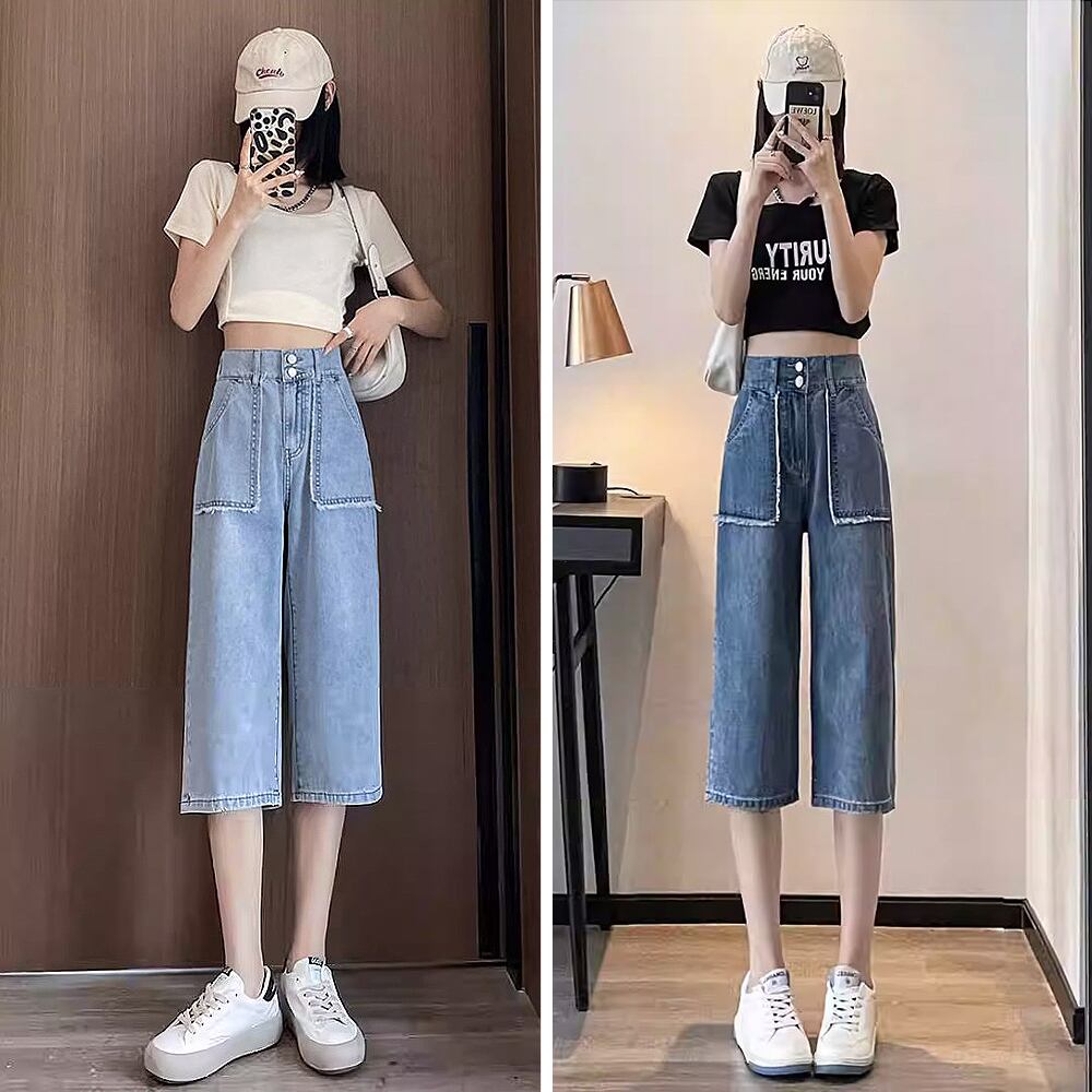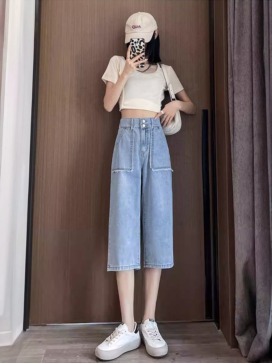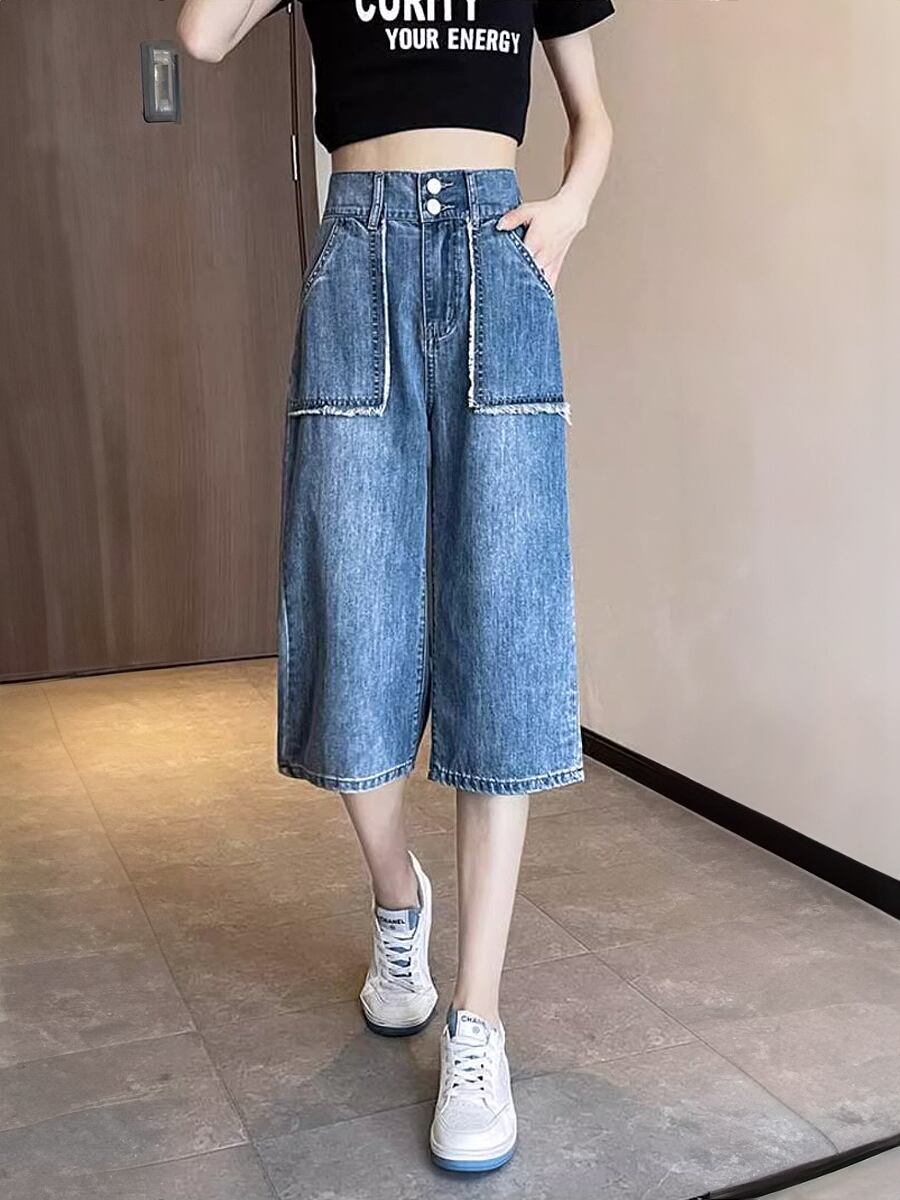 全2色 デニム6分丈ハーフパンツ 膝下 ハーフパンツ ショートパンツ 六分丈 デニム ハイウエスト ポケットフリンジ フリンジ ウォッシュ加工 かわいい 大人可愛い きれいめ シンプル カジュアル 大人 上品 おしゃれ お洒落 かっこいい 大人可愛い 大人女子 こなれ感 ラフ ラブリー キュート ガーリー 個性的 レディース 通勤 学生 通学 デート お出かけ 公園デビュー リゾート 旅行 韓国コーデ 韓国ファション ウエストゴム ブルー 青 ライトブルー