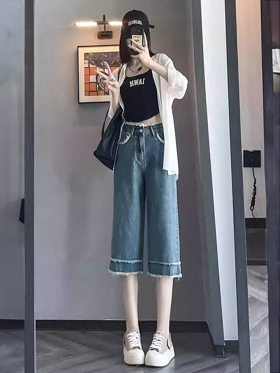 膝下丈、六分丈のデニムハーフパンツです。