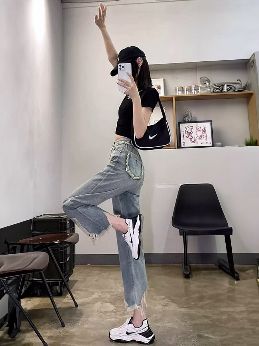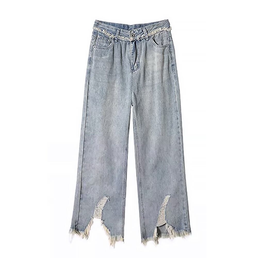 ダメージ加工デニムパンツ 膝下 ダメージパンツ 九分丈 9分丈 デニム ハイウエスト フリンジ ウォッシュ加工 ジーパン ジーンズ ダメージ 穴開き加工 かわいい 大人可愛い きれいめ シンプル カジュアル 大人 上品 おしゃれ お洒落 かっこいい 大人可愛い 大人女子 こなれ感 ラフ ラブリー キュート ガーリー 個性的 レディース 通勤 学生 通学 デート リゾート 旅行 韓国コーデ 韓国ファション ブルー ビンテージブルー ヴィンテージブルー