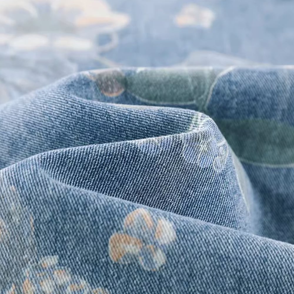 花柄プリントデニムパンツ フラワープリント サマーデニム 花柄 ハイウエスト ワイド ロング デニム カラーデニム デニムパンツ かわいい 大人可愛い シンプル カジュアル おしゃれ お洒落 かっこいい こなれ感 ラフ メンズライク ボーイッシュ ガーリー 春夏 学生 通学 デートお出かけ 休日 旅行 着回し 普段使い コーデ スタイル 楽ちん 大きいサイズ ラージサイズ 韓国コーデ 韓国ファッション ブルー