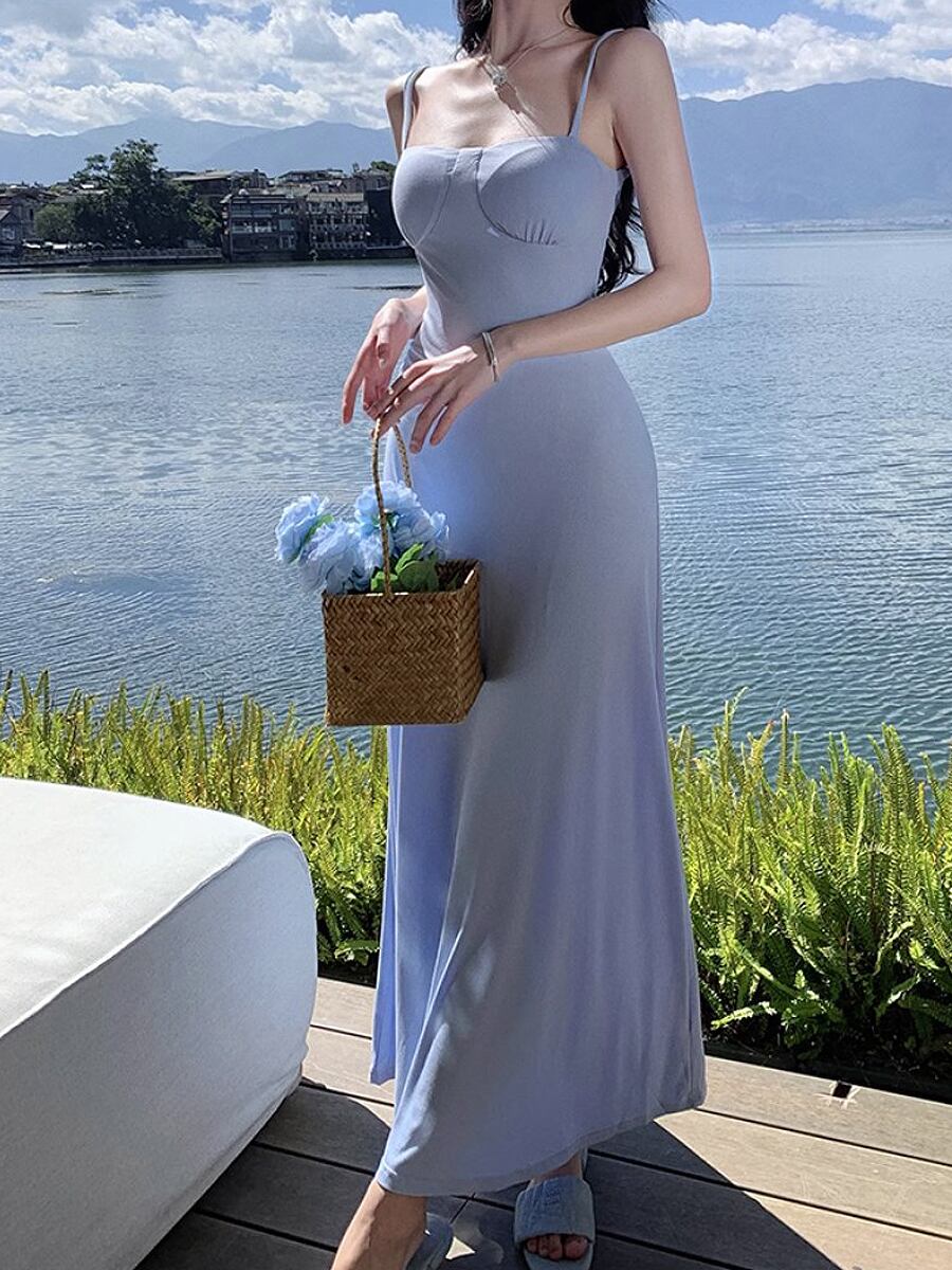 胸パッド入りバックカットキャミソールワンピース ワンピース キャミワンピ 夏ワンピ 胸パッド キャミソールワンピース キャミソール Aライン フレア 背中見せ 背中開き リゾートワンピース リゾートワンピ 旅行 かわいい 大人可愛い きれいめ おしゃれ お洒落 かっこいい レトロ 大人女子 こなれ感 ラブリー キュート ガーリー 個性的 モード系 エレガント モダン 主役級 存在感 抜け感 韓国コーデ 韓国ファッション 水色 青 ライトブルー