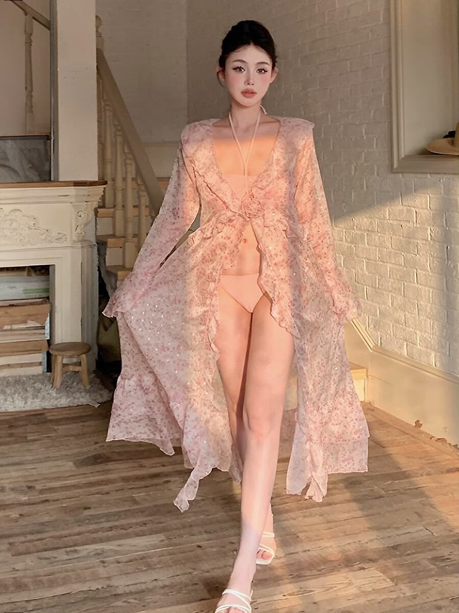 水着 パールチェーンビキニ ホルターネック ビキニ ピンク サイドカットアウト 横リボン チェーン付き パールチェーン サイドリボン ベビーピンク くすみピンク レディース スイムウェア パッド付き ワイヤーなし リボン 露出少なめ 体系カバー ウエストマーク ガーリー 可愛い おしゃれ お洒落 女っぽ 個性的 無地 レディース ホテル 温泉 海 ビーチ プール リゾート 旅行 韓国コーデ 韓国ファッション