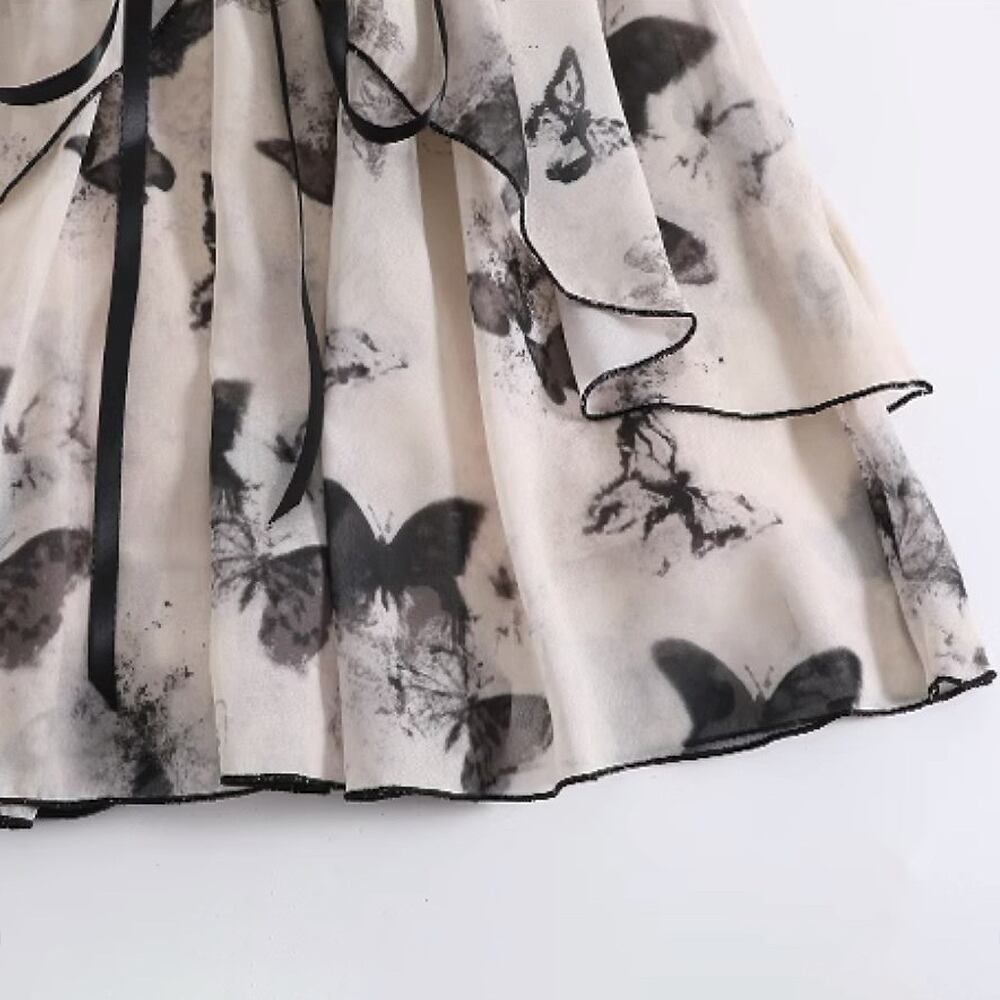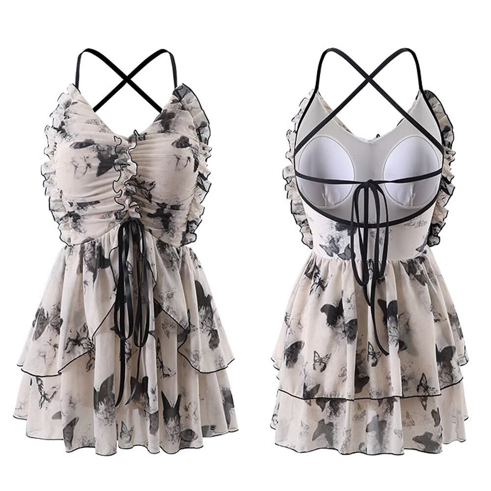 水着 蝶々プリントバッククロススカート付きワンピース水着 ワンピース水着 蝶々柄 ティアード リボン フリル ひらひらリボン スカート付きワンピース水着 パッド付き すっきり見せ 胸元盛り かわいい 大人可愛い 水遊び おしゃれ ラブリー キュート 個性的 かっこいい レディース 女性用 ビーチ プール リゾート 体系カバー 美脚 脚長 スタイルアップ 美スタイル モテ インスタ映え 韓国コーデ 韓国ファッション 黒 ブラック ベージュ