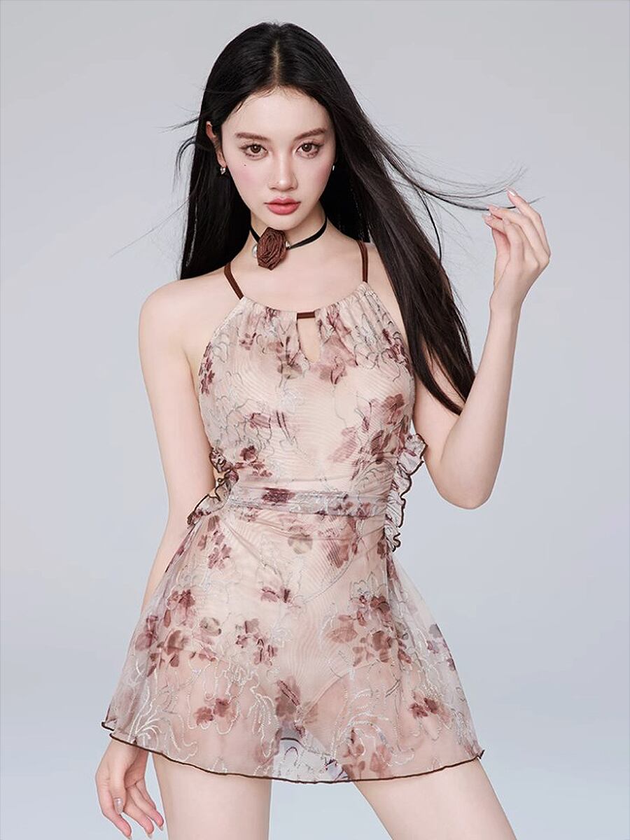 水着 花柄バッククロスレーススカート付きワンピース水着 モノキニ ワンピース水着 花柄 小花柄 リボン フリル バッククロス リボン スカート付きワンピース水着 パッド付き すっきり見せ 胸元盛り かわいい 大人可愛い 水遊び おしゃれ ラブリー キュート 個性的 かっこいい レディース 女性用 ビーチ プール リゾート 体系カバー 美脚 脚長 スタイルアップ 美スタイル モテ インスタ映え 韓国コーデ 韓国ファッション ベージュ ブラウン