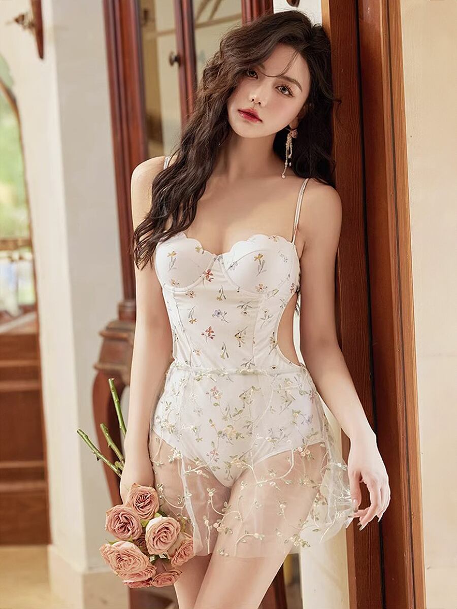 2点セット 水着 花柄ビスチェ風ワンピース水着+レースパレオ 花柄刺繍レース レーススカート 花びらカット モノキニ 背中見せ バックカットアウト 白地花柄 サイドちら見せ サイドカット パッド付き かわいい 大人可愛い 上品 お嬢様風 お姫様 プリンセス 水遊び おしゃれ ラブリー キュート かっこいい レディース 女性用 ビーチ プール リゾート 体系カバー 美脚 脚長 スタイルアップ 美スタイル モテ インスタ映え 韓国コーデ 韓国ファッション