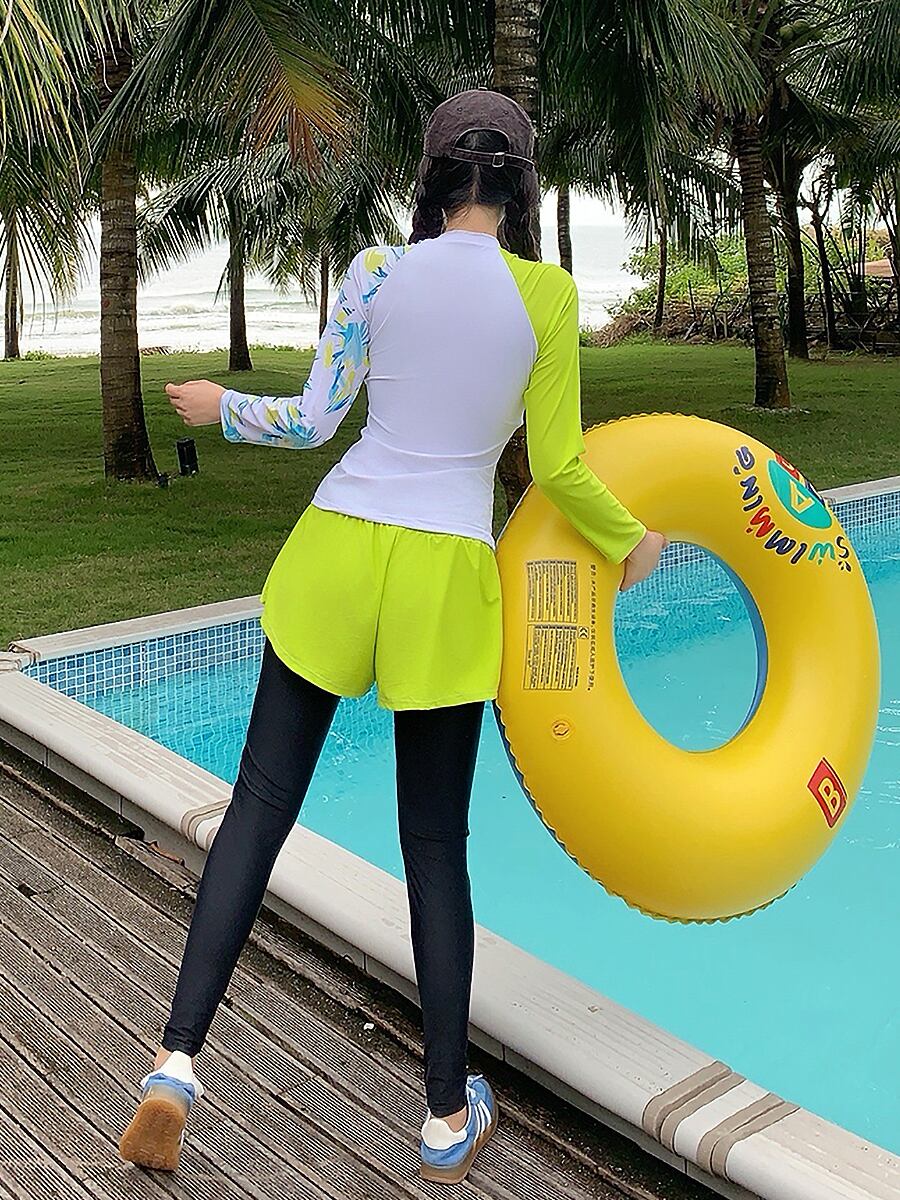 水着 長袖 切り替えデザインオーバーショートパンツ付きロングパンツ スポーティセパレート水着 ダイビングスーツ 白 黒 緑 ホワイト ブラック グリーン ドッキングショートパンツ ツーピース セパレート 長袖 ラッシュガード水着 ショートパンツ フレア フィットネス フェイクショートパンツ ラッシュガード 体型カバー スポーティ 水遊び きれいめ かわいい パッド付き ノンワイヤー かわいい 大人可愛い きれいめ おしゃれ スタイリッシュ スイムウェア