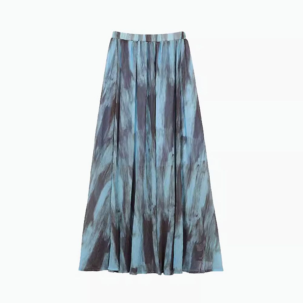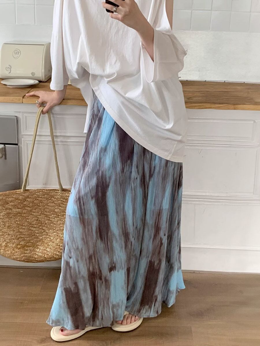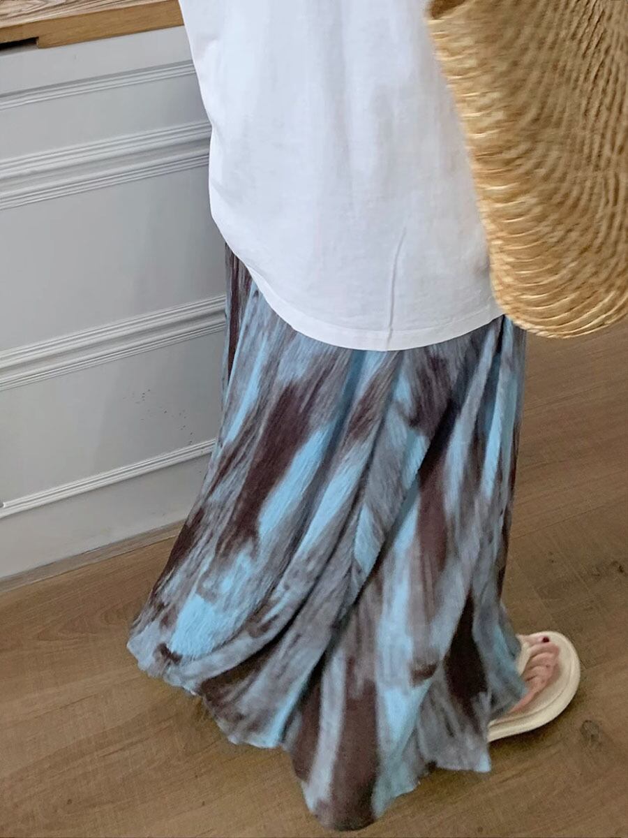 スカート くすみブルータイダイカラーロングギャザースカート ロング丈 Aライン ウエストゴム ウエスト楽ちん 楽ちん ロング マキシ タイダイカラー ダスティブルー ダスティカラー タイダイ柄 かわいい 大人可愛い カジュアル 春夏 大人 おしゃれ 大人女子 こなれ感 キュート 主役級 存在感 抜け感 格子柄 レディース 通勤 学生 通学 デート お出かけ 女子会 休日 着回し 普段使い 重ね着 韓国 オルチャン ファッション コーデ スタイル 韓国コーデ 韓国ファッション